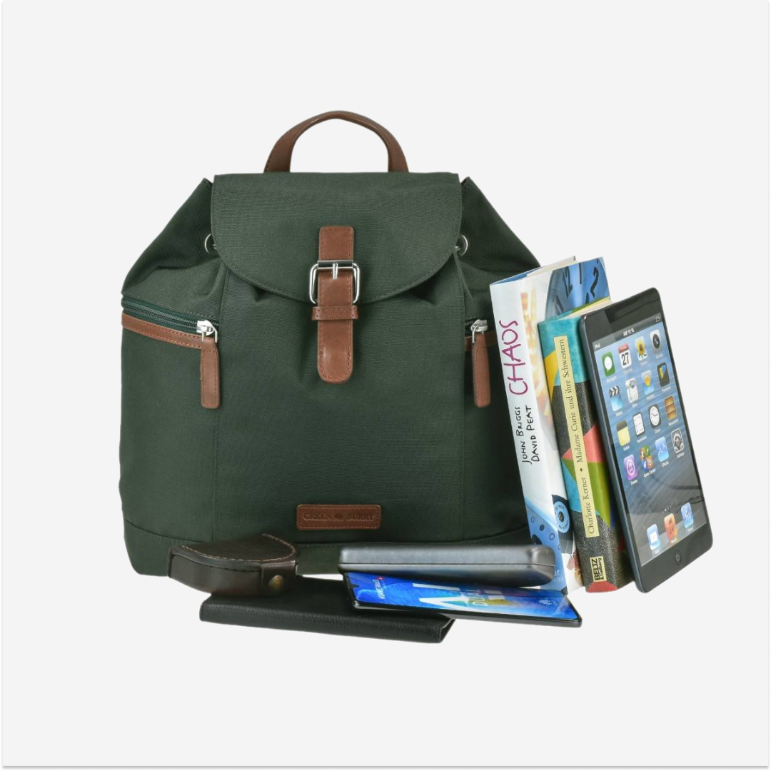 This is a Greenburry backpack made from high-quality nylon, with dimensions of 32 cm width and 28 cm height. The model is named "Heidi" and comes in a green color, giving it an elegant and versatile look. The backpack is designed to be practical and durable, making it ideal for daily use, whether you are going to school, work, shopping, or traveling. The spacious main compartment is lined and secured with a zipper, ensuring the safety of your personal items. Inside, the backpack features several pockets and additional compartments for efficient organization of your belongings, such as books, notebooks, a laptop, keys, phone, and other small accessories. The backpack also has a front zipper compartment and a back zipper compartment for quick access to essential items. The shoulder straps are adjustable, allowing you to customize the length for maximum comfort. The nylon material is easy to clean, making the backpack practical for everyday use. The "Heidi" backpack from Greenburry is an excellent combination of functionality and style, perfect for those who appreciate quality accessories and modern design.