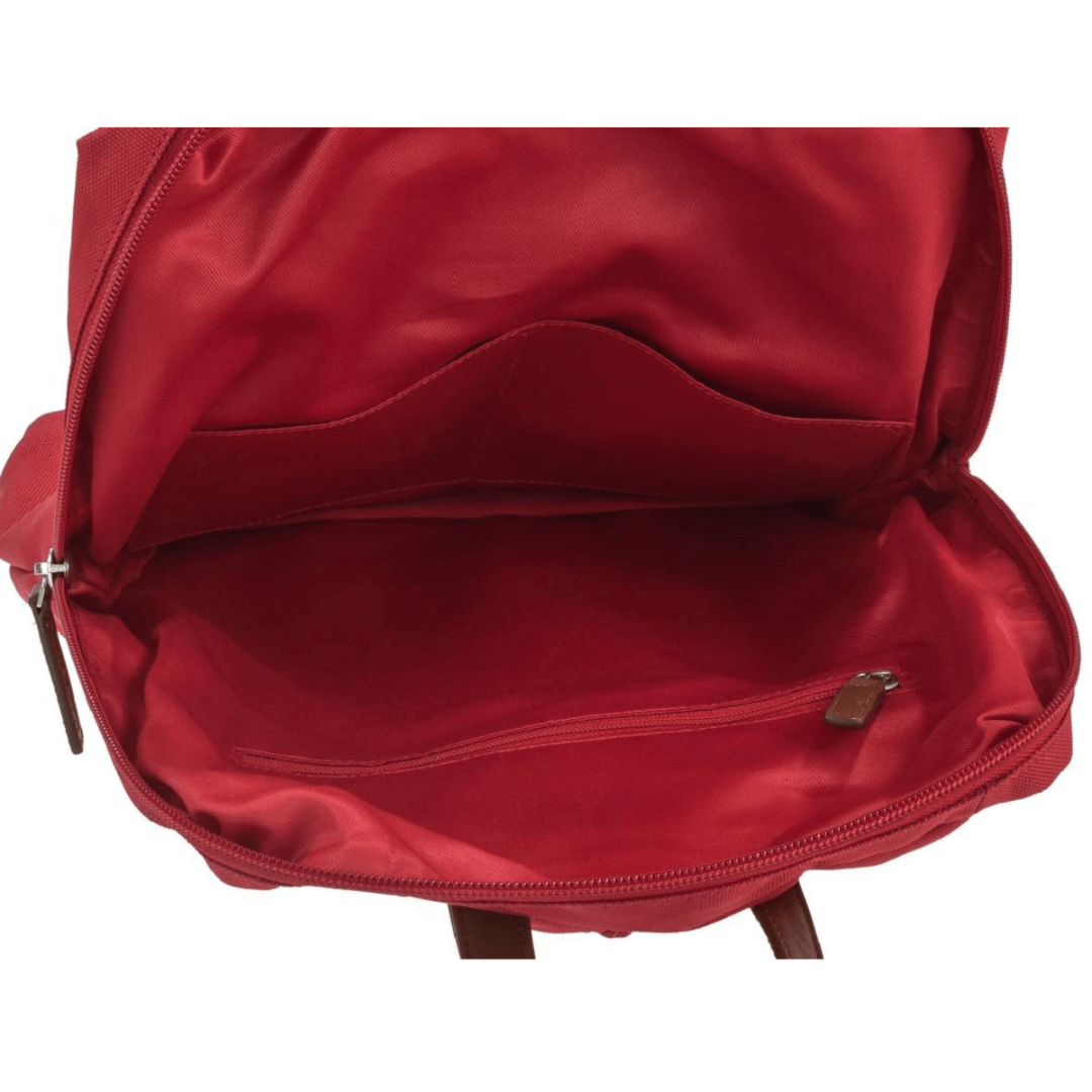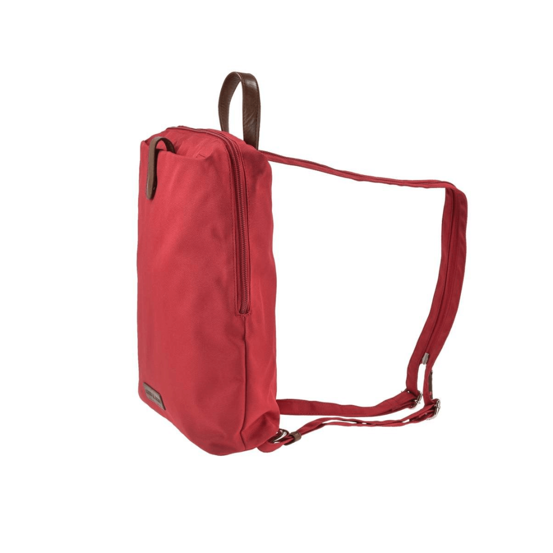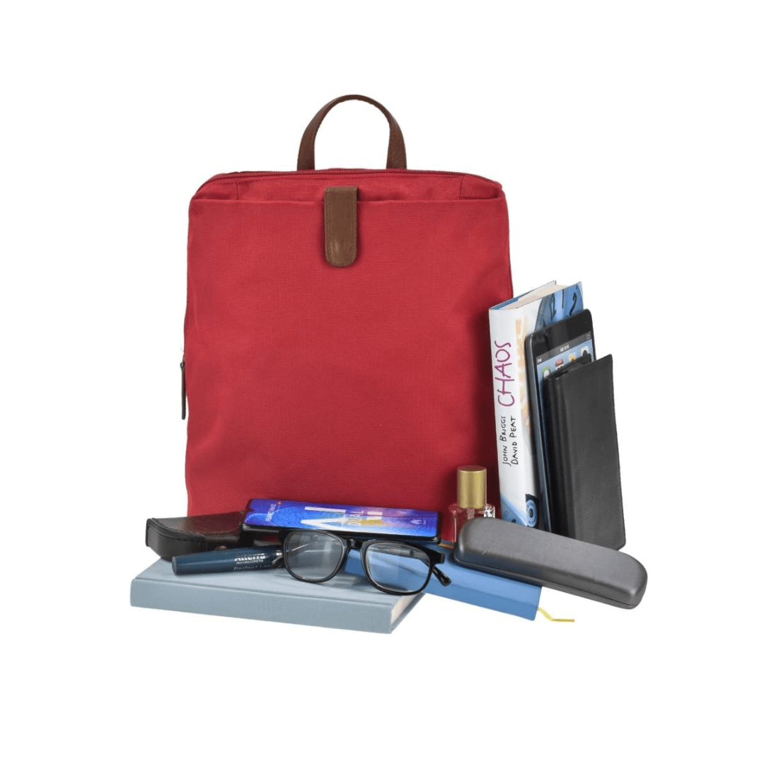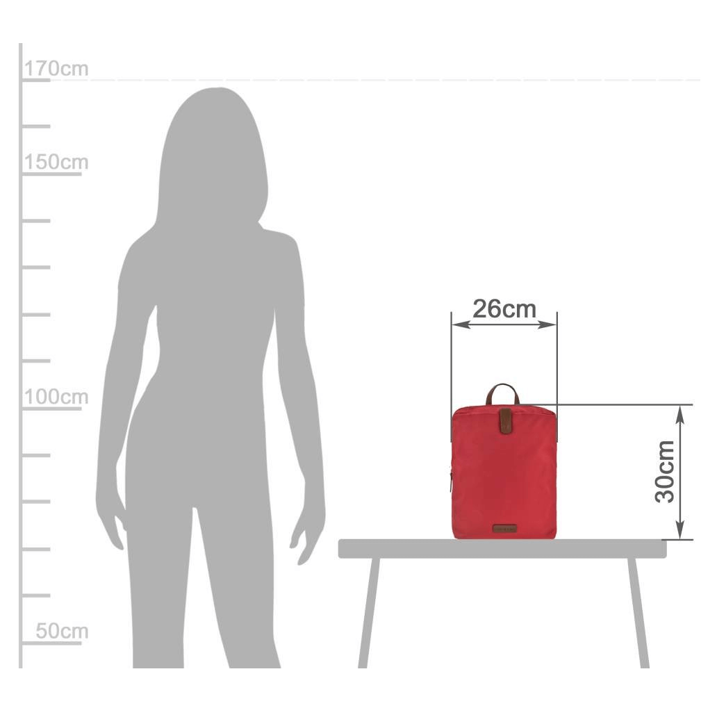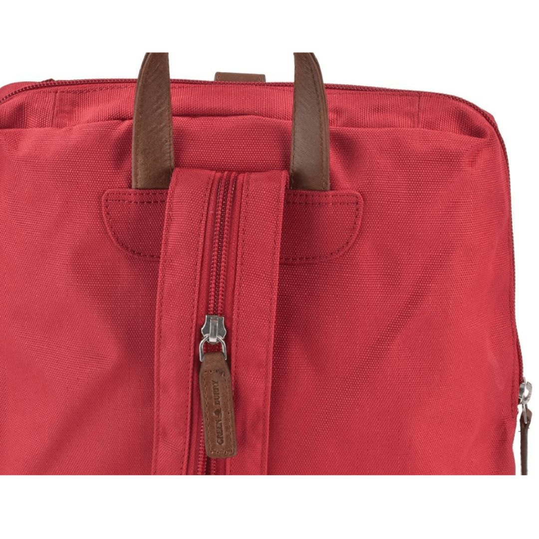 This is a Greenburry backpack made from high-quality nylon, with dimensions of 26 cm in width and 30 cm in height. The model is called "Eva" and it comes in a red color, giving it an elegant and versatile appearance. The backpack is designed to be practical and durable, making it ideal for everyday use, whether you are going to school, work, shopping, or traveling. The spacious main compartment is padded and closes with a zipper, ensuring the security of your personal items. Inside, the backpack features multiple pockets and additional compartments for efficient organization of items such as books, notebooks, a laptop, keys, a phone, and other small accessories. The backpack also has a front zippered compartment and a back zippered compartment for quick access to essential items. The shoulder straps are adjustable, allowing you to customize the length for maximum comfort. The nylon material is easy to clean, making the backpack practical for daily use. The "Eva" backpack from Greenburry is an excellent combination of functionality and style, perfect for those who appreciate high-quality accessories and modern design.