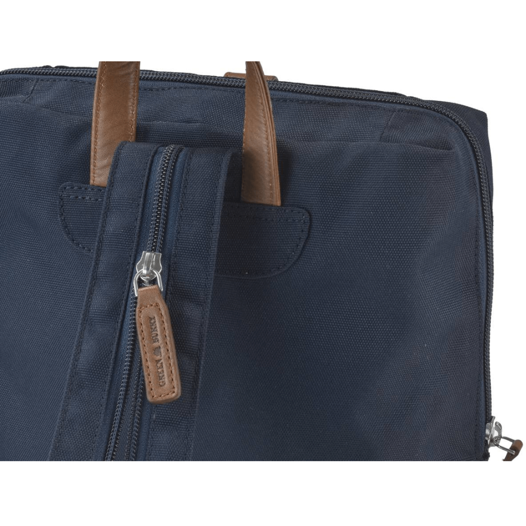 This is a Greenburry backpack made from high-quality nylon, with dimensions of 26 cm in width and 30 cm in height. The model is called "Eva" and it comes in a blue color, giving it an elegant and versatile appearance. The backpack is designed to be practical and durable, making it ideal for everyday use, whether you are going to school, work, shopping, or traveling. The spacious main compartment is padded and closes with a zipper, ensuring the security of your personal items. Inside, the backpack features multiple pockets and additional compartments for efficient organization of items such as books, notebooks, a laptop, keys, a phone, and other small accessories. The backpack also has a front zippered compartment and a back zippered compartment for quick access to essential items. The shoulder straps are adjustable, allowing you to customize the length for maximum comfort. The nylon material is easy to clean, making the backpack practical for daily use. The "Eva" backpack from Greenburry is an excellent combination of functionality and style, perfect for those who appreciate high-quality accessories and modern design.