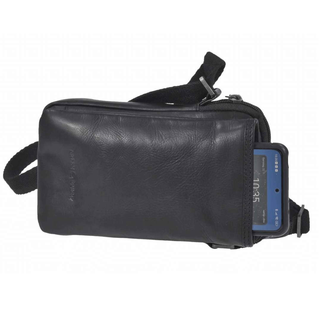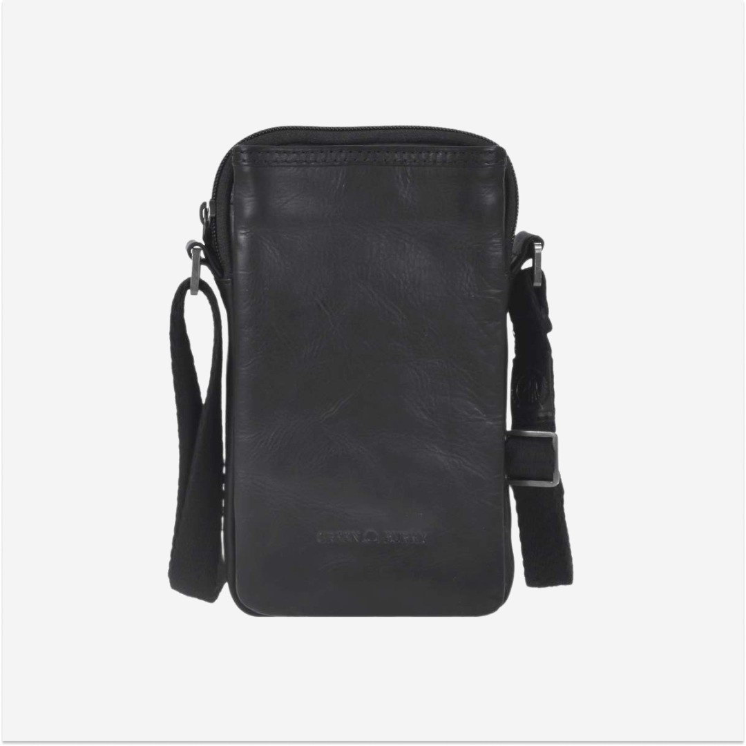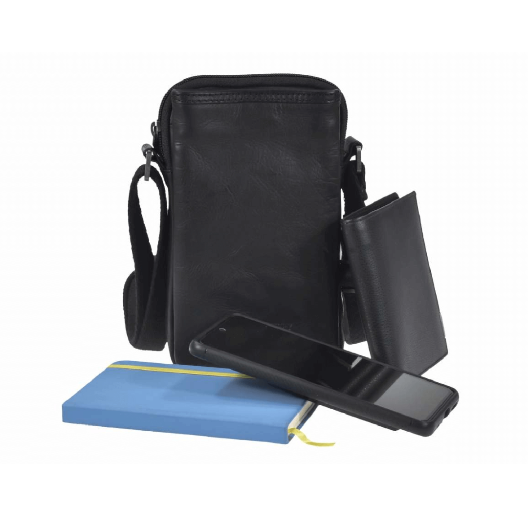 The "Pure Black" leather shoulder bag, model 1106-20, in black color, is a practical and elegant option for carrying your mobile phone. Here are some details about this product: