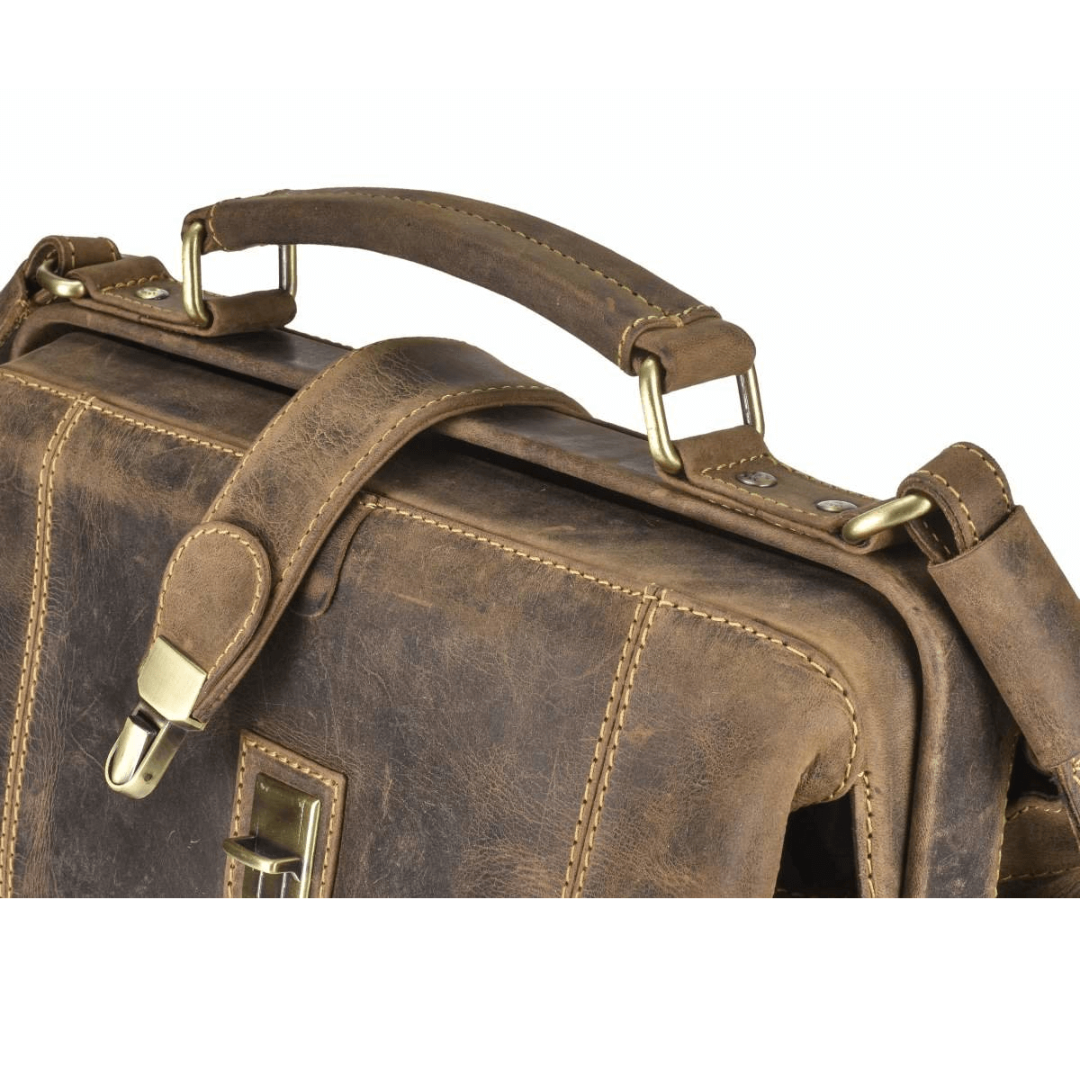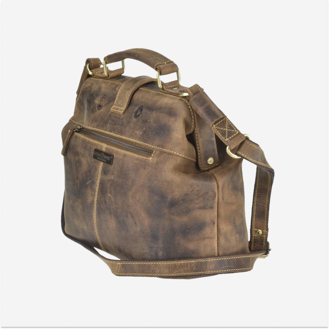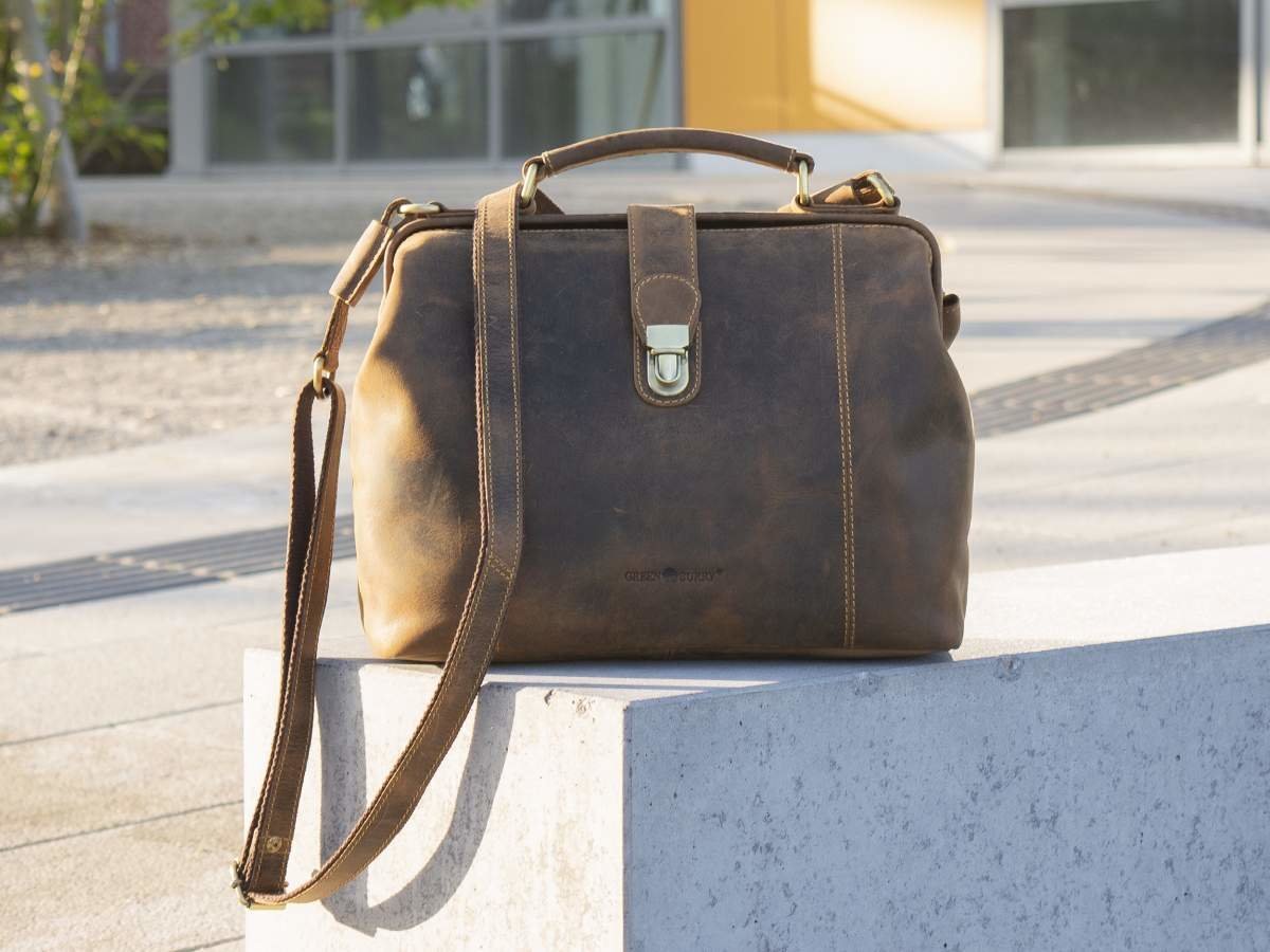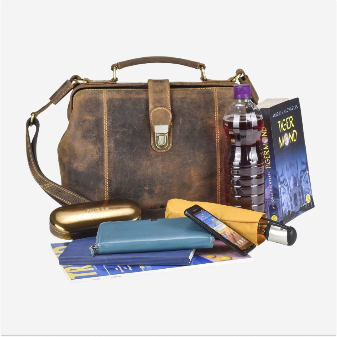 The Greenburry frame closure bag is made from high-quality leather and measures 35x25 cm. The "Vintage" model is available in an antiqued brown shade, giving it a classic and elegant look. This bag is designed to be practical and durable, ideal for daily use or special occasions. The main compartment closes with a metal frame, ensuring the security of personal items. Inside, the bag has several pockets and additional compartments for efficient organization of items such as a phone, wallet, keys, and other small accessories. The leather used for this bag is of superior quality, providing both durability and a sophisticated appearance. The material is easy to maintain and resistant to wear, ensuring long-term use. The "Vintage" frame closure bag from Greenburry represents an excellent combination of functionality and style, perfect for those who appreciate high-quality accessories with a classic design.
