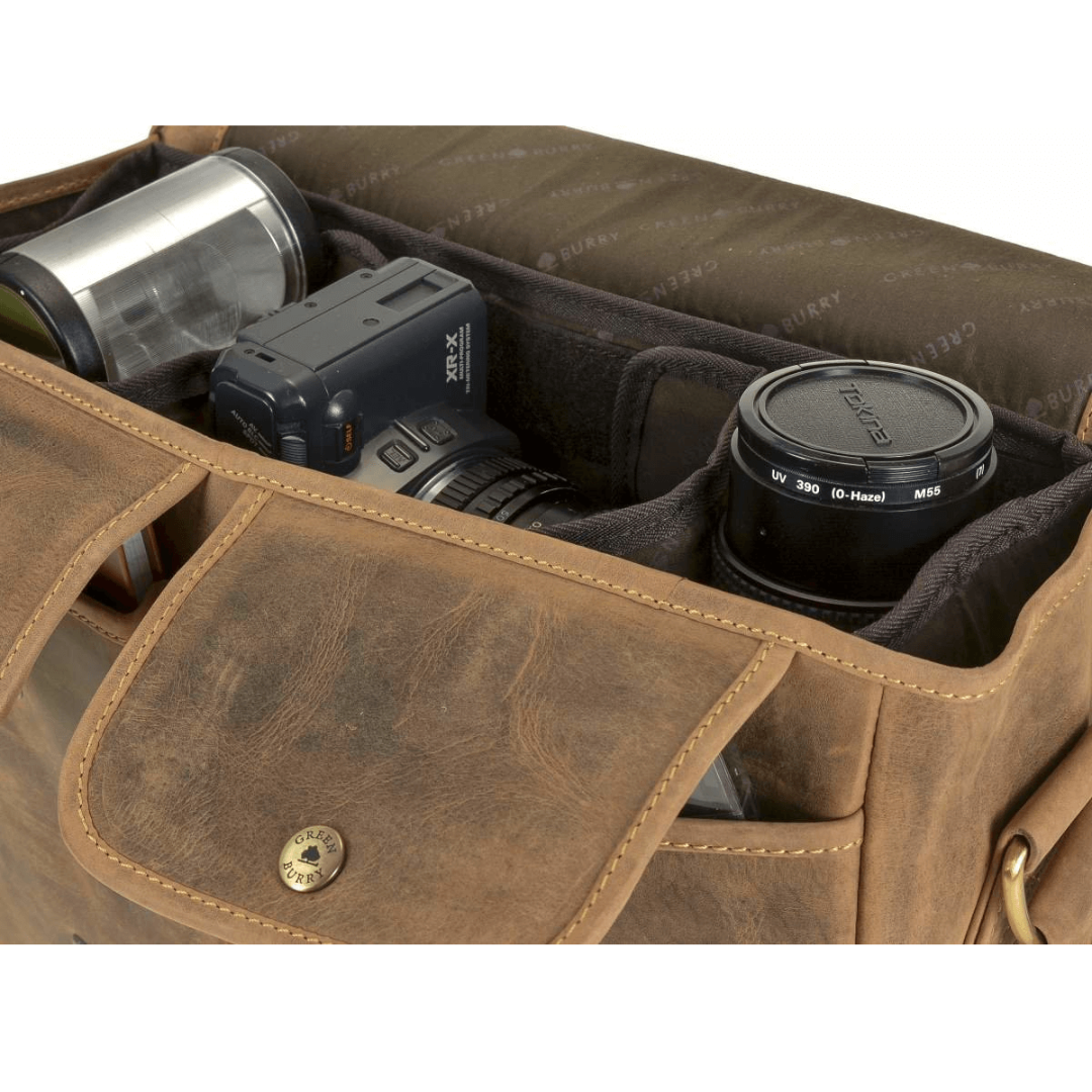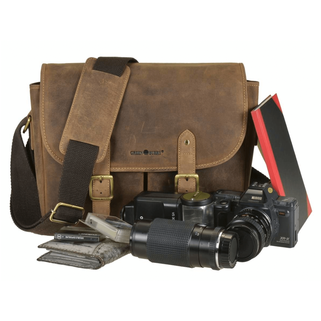 The leather camera bag with dimensions of 34x28 cm in "Vintage" style and antikbraun color (model number 1594-25) is an elegant and practical solution for photographers and lovers of high-quality accessories. Made from high-quality leather, the bag offers a robust and durable construction. The "Vintage" style gives it a classic and timeless appearance, while being functional and aesthetically pleasing. The bag is specifically designed to safely and comfortably carry a camera. It features a spacious main compartment, secured with a robust zipper, to protect the camera from shocks and scratches. Additionally, it provides space for additional accessories such as lenses, chargers, or other personal items in separate pockets or interior compartments. The shoulder straps are often adjustable, allowing you to carry the bag comfortably over the shoulder or even across the body for added security and comfort. The antikbraun color adds an elegant look to the bag, complementing various outfits and styles well. In conclusion, the "Vintage" leather camera bag from Greenburry is an excellent choice for photography enthusiasts who appreciate quality, style, and functionality.