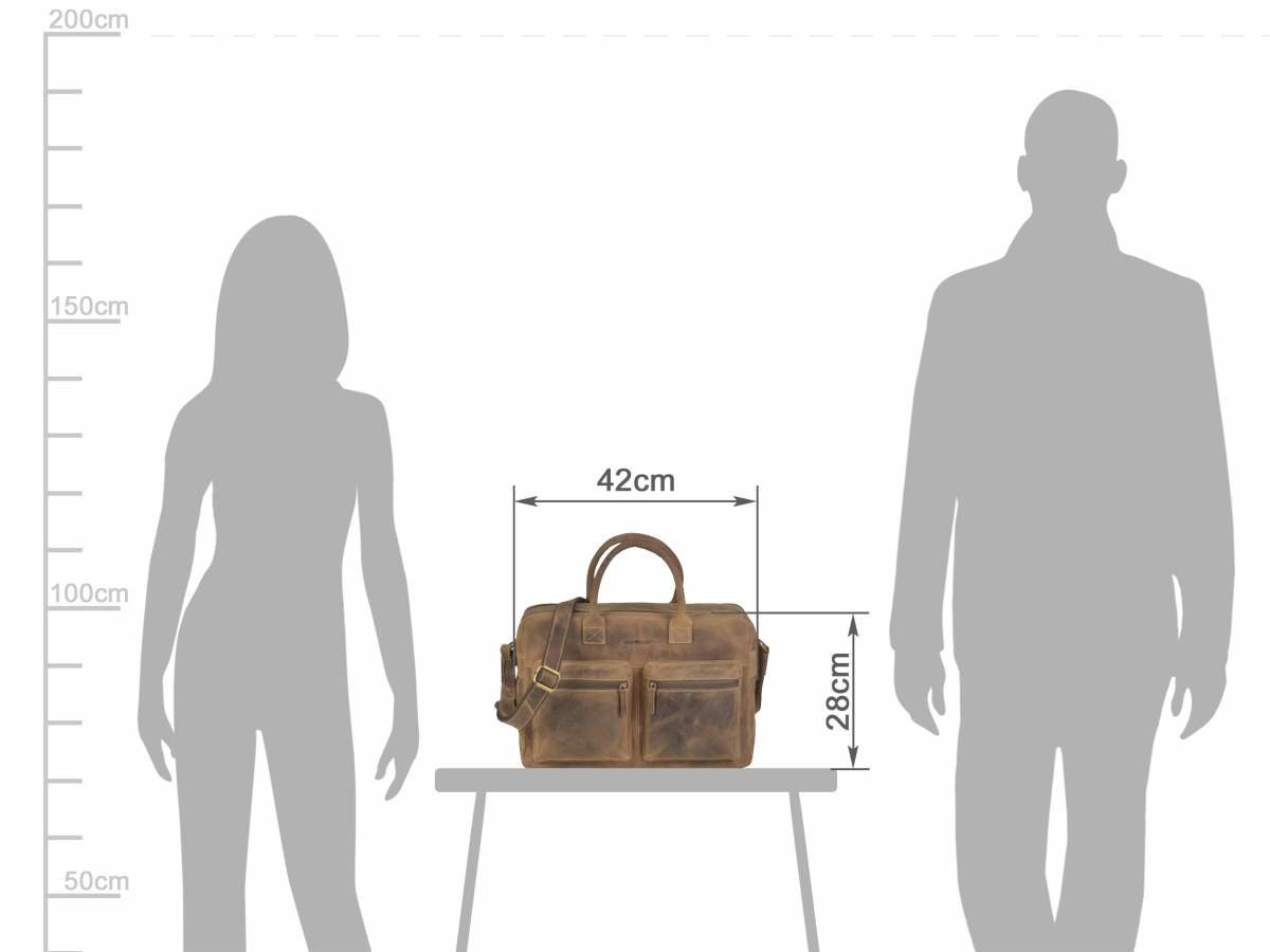 The leather briefcase with dimensions of 42x28 cm, in "Vintage" style and antikbraun color (model number 1674-25), is a practical and elegant accessory for daily use.