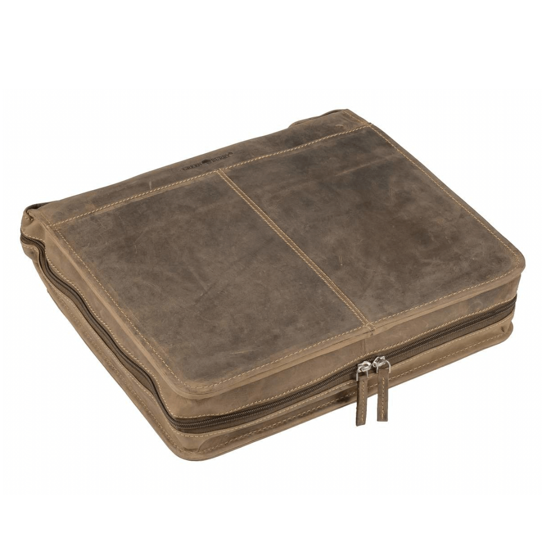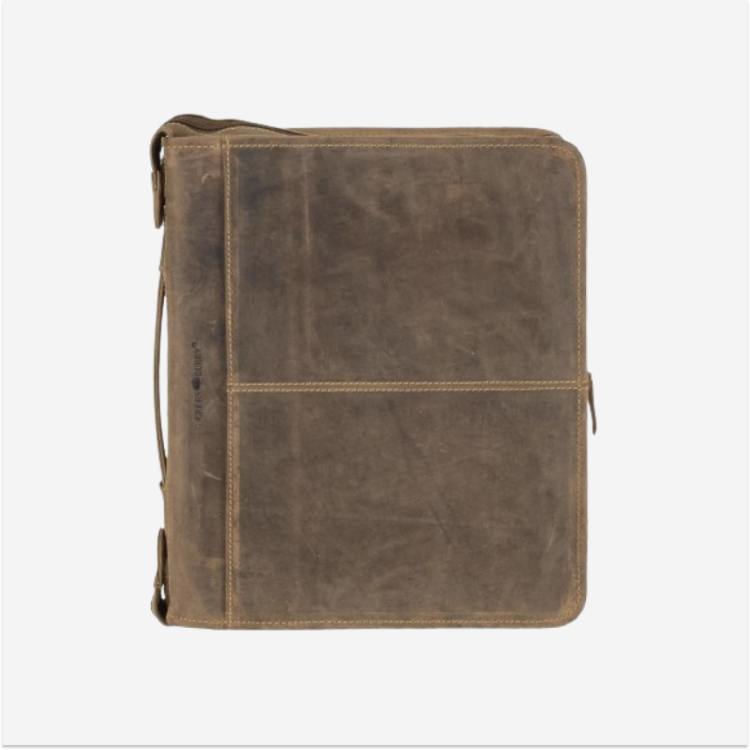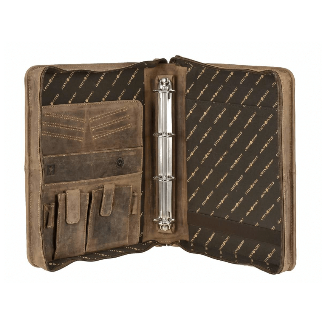 The writing folder is made from high-quality leather, suitable for A4 format, with a ring mechanism and a vintage design in antique brown.