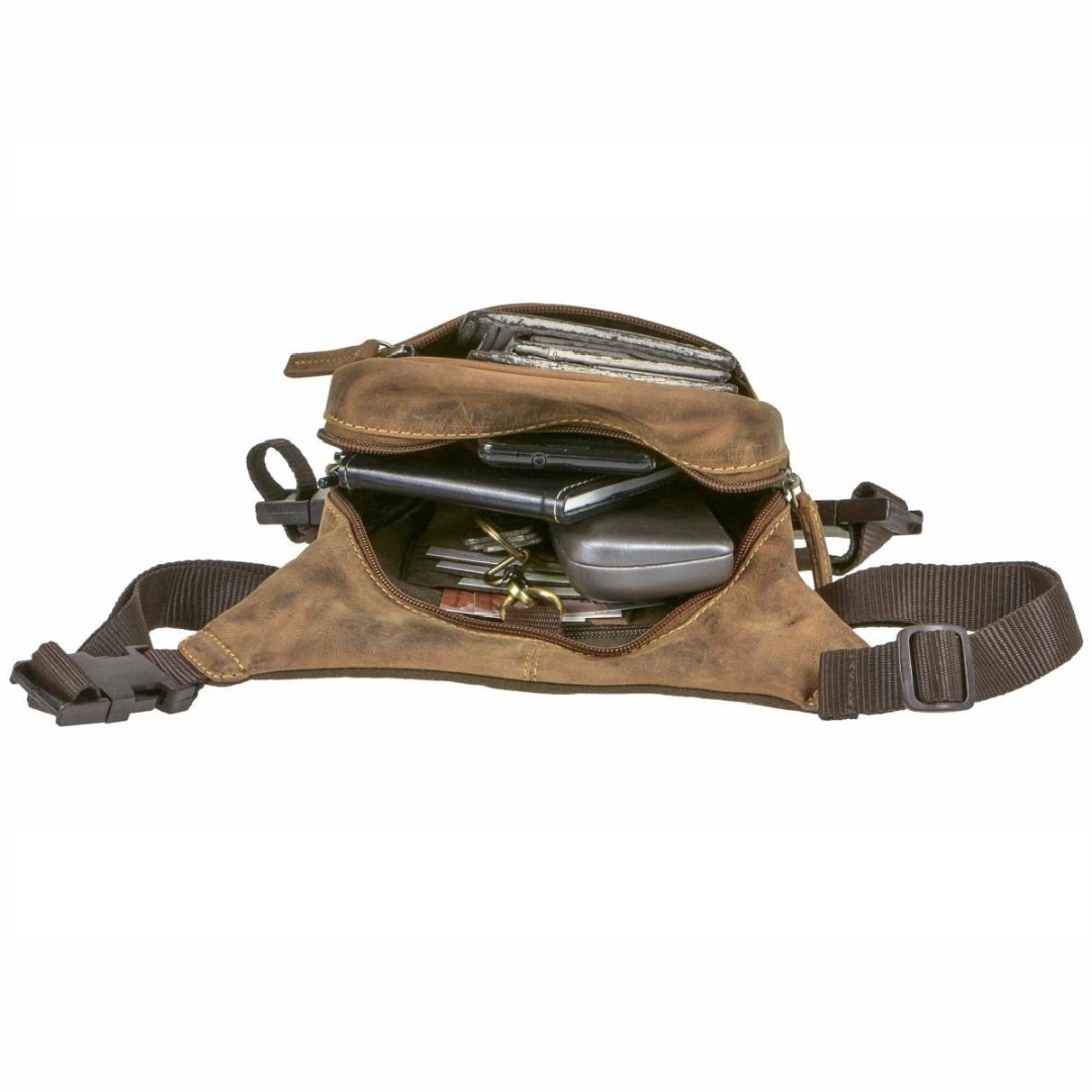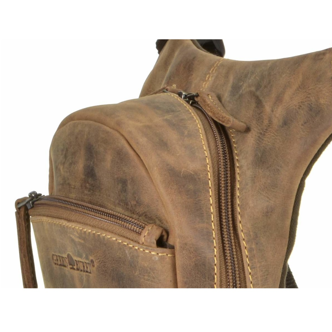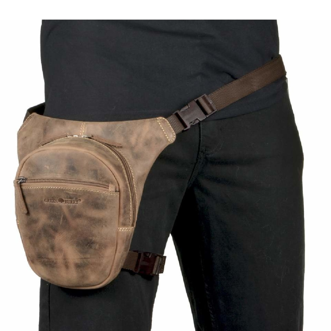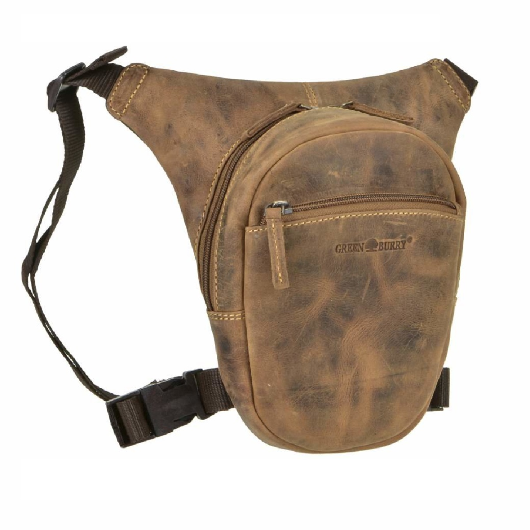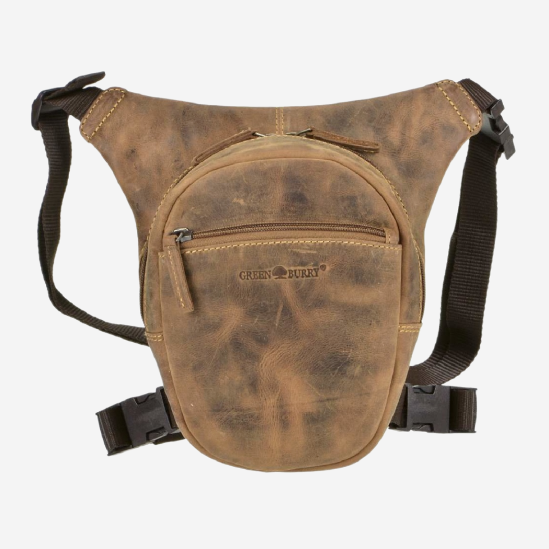 The Greenburry hip bag is made of high-quality leather and measures 26x24 cm. The "Vintage Biker" model is available in an antique brown shade, giving it a classic and elegant look. This bag is designed to be practical and durable, ideal for daily use or motorcycle trips. It features a spacious main compartment that closes with a sturdy zipper, ensuring the security of personal items. Additionally, the bag is equipped with a leg strap for extra stability while riding. The leather used for this bag is of superior quality, offering both durability and a sophisticated appearance. The material is easy to maintain and resistant to wear, ensuring long-lasting use. The "Vintage Biker" hip bag from Greenburry represents an excellent combination of functionality and style, perfect for those who appreciate high-quality accessories with a classic design.