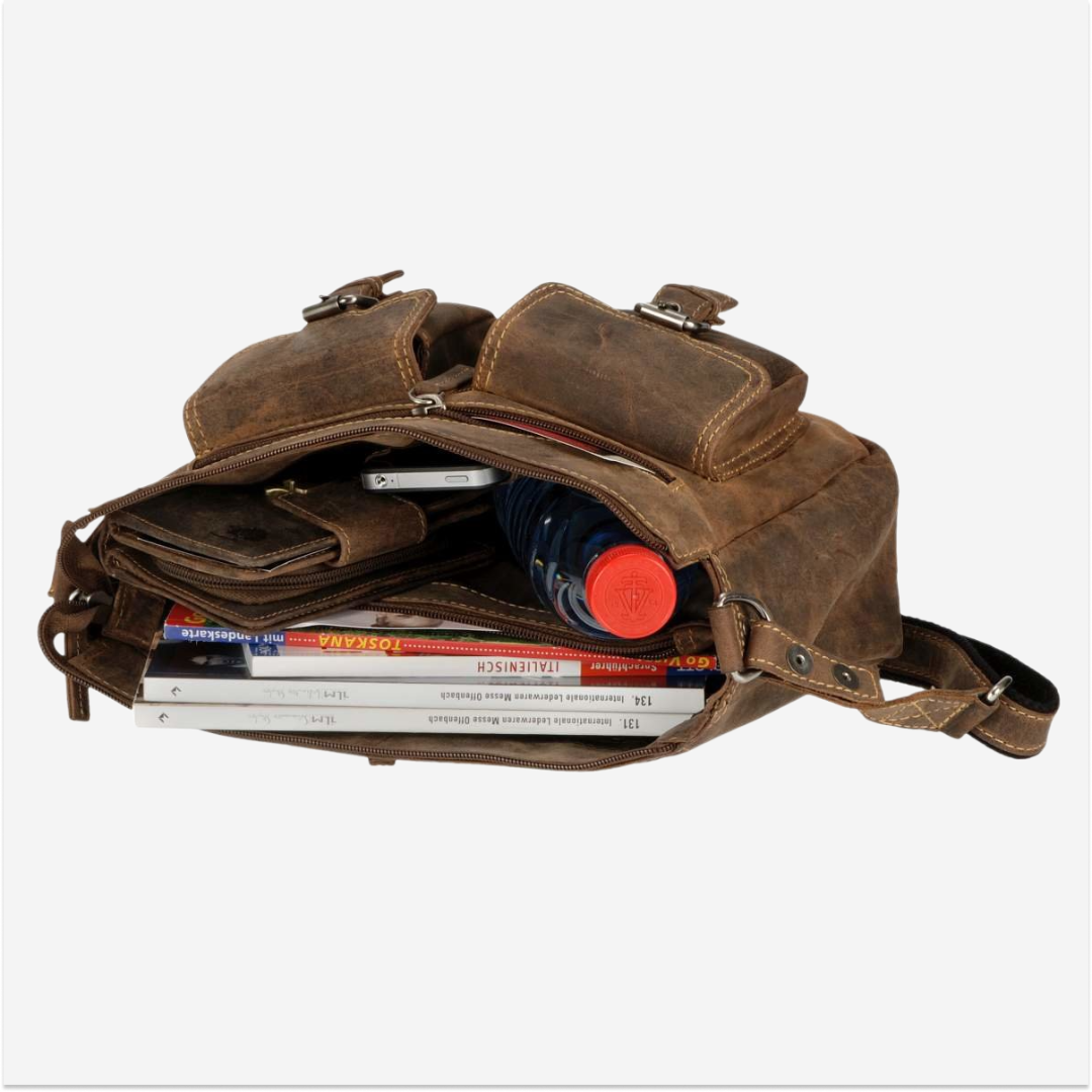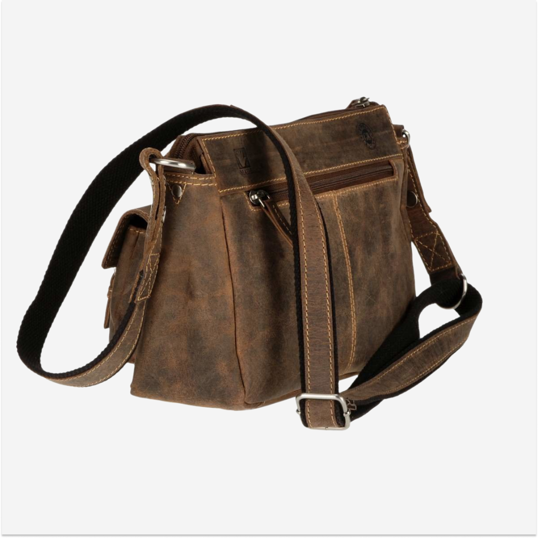 Shoulder bag made of leather, measuring 27x15 cm, the "Vintage" antique brown model 1769-25, stands out for its classic design and antique brown hue.