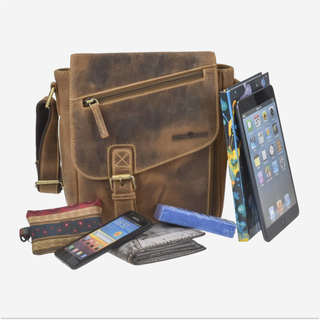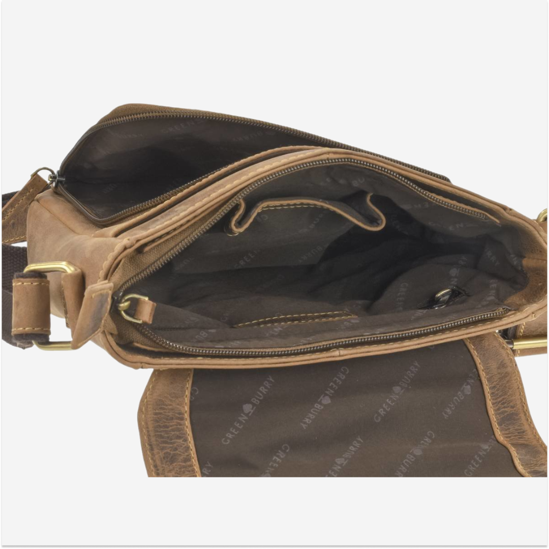 The Greenburry shoulder bag is crafted from high-quality leather and measures 26 cm in width and 25 cm in height. The model is named "Vintage" and features an antique brown color, giving it a classic and elegant look. This bag is designed to be practical and durable, making it ideal for daily use, whether you are shopping, going to work, or traveling. The spacious main compartment is lined and closes with a zipper, ensuring the security of your personal items. Inside, the bag has multiple pockets and additional compartments for efficient organization of items such as keys, phone, wallet, and other small accessories. Additionally, the bag has a front zipper compartment and a back zipper compartment for quick access to essential items. The shoulder strap is adjustable, allowing you to set the length for maximum comfort. The leather used for this bag is of superior quality, offering both durability and a sophisticated appearance. The material is easy to maintain and resistant to wear, ensuring long-term use. The "Vintage" shoulder bag from Greenburry is an excellent combination of functionality and style, ideal for those who appreciate high-quality accessories with a classic design.