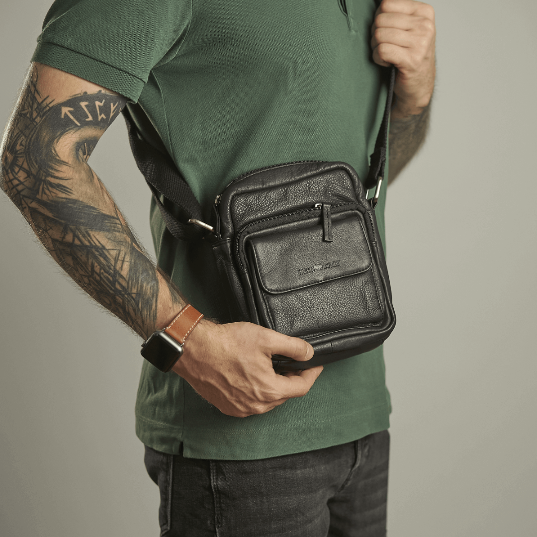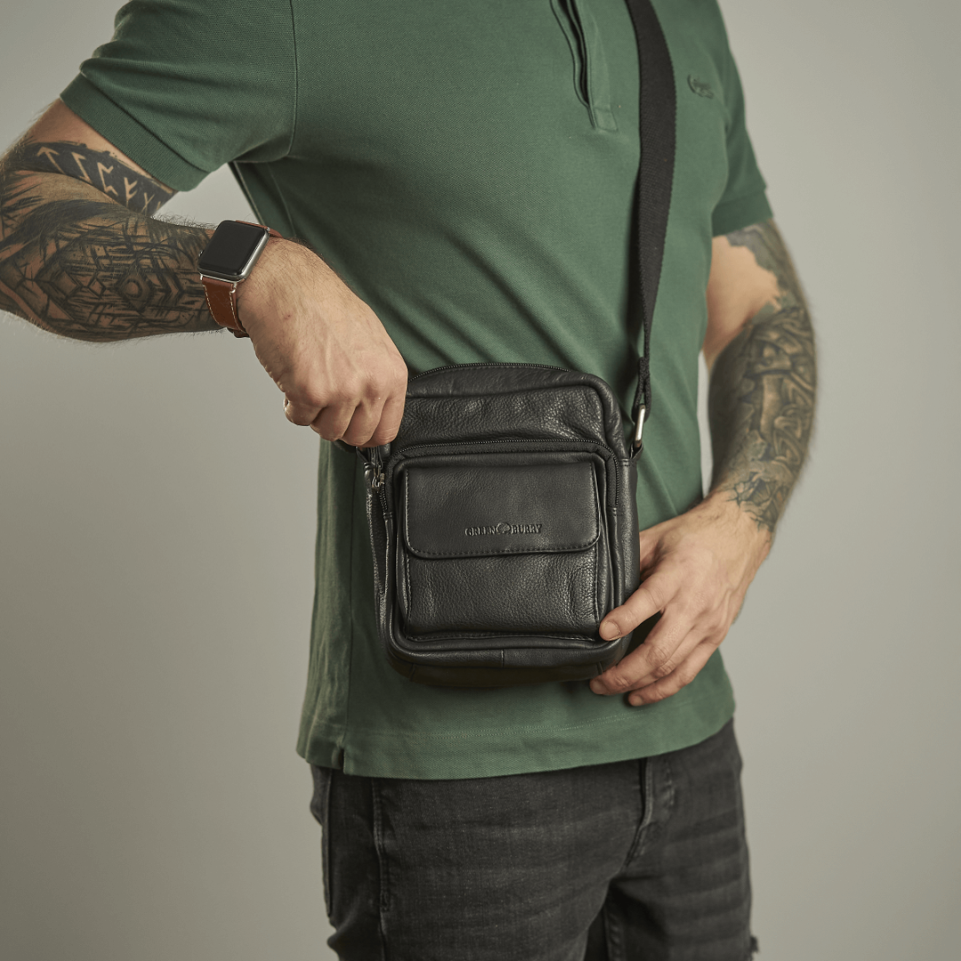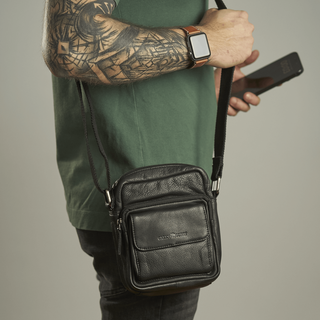 The Greenburry shoulder bag is crafted from high-quality leather, measuring 18 cm in width and 20 cm in height. The model is named "Basic" and black color, giving it a classic and elegant appearance. Designed to be practical and durable, this bag is ideal for daily use, whether you are shopping, going to work, or traveling. The spacious main compartment is lined and secured with a zipper, ensuring the safety of your personal items. Inside, the bag has multiple pockets and additional compartments for efficient organization of items such as keys, phone, wallet, and other small accessories. Additionally, the bag has a front zippered compartment and a back zippered compartment for quick access to essential items. The shoulder strap is adjustable, allowing you to customize the length for maximum comfort. The leather used for this bag is of superior quality, offering both durability and a sophisticated look. The material is easy to maintain and resistant to wear, ensuring long-term use. The "Basic" shoulder bag by Greenburry is an excellent combination of functionality and style, perfect for those who appreciate high-quality accessories with a classic design.