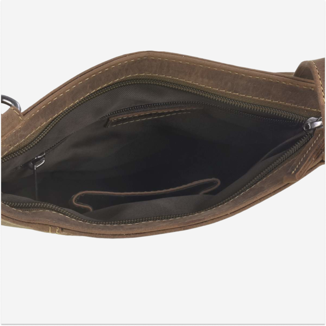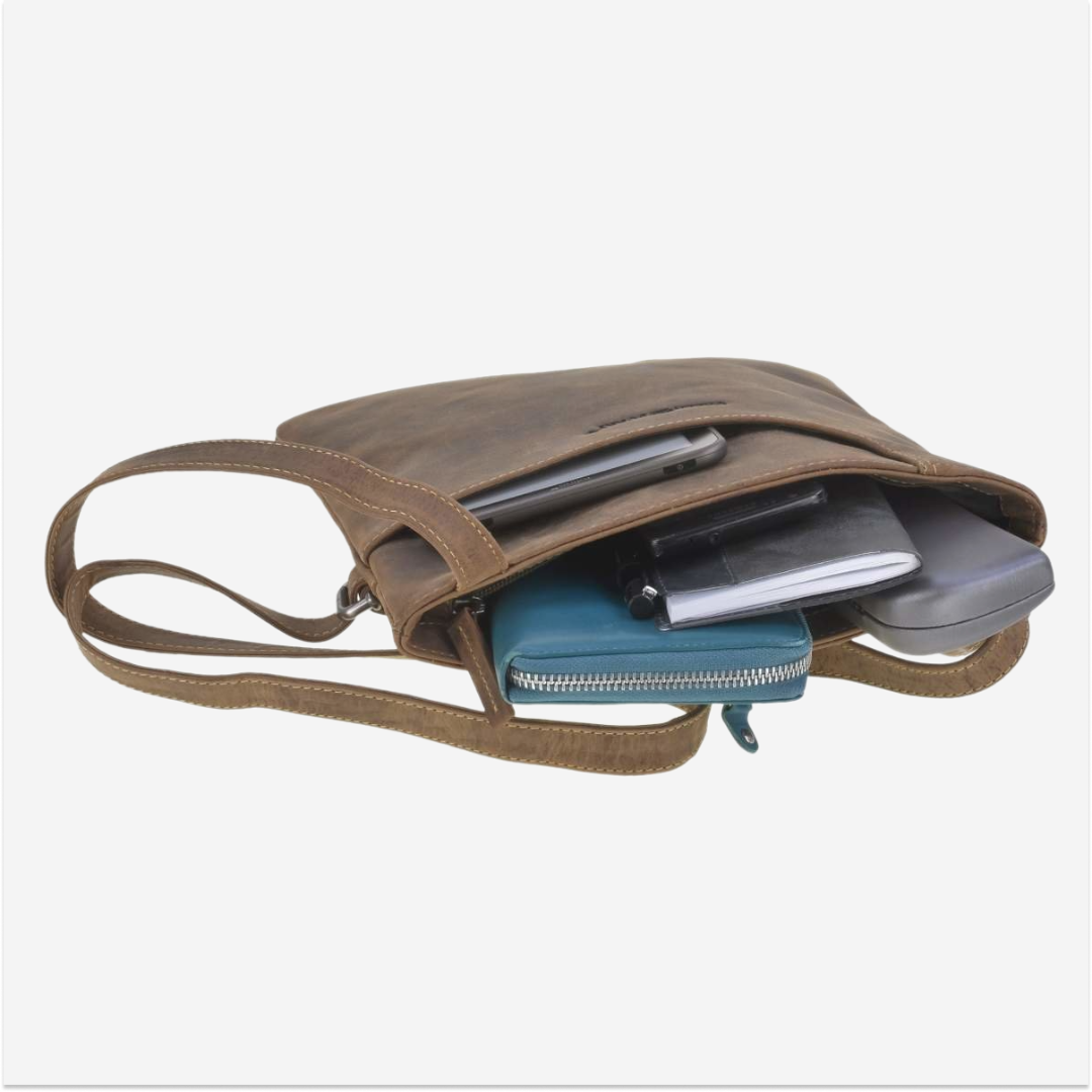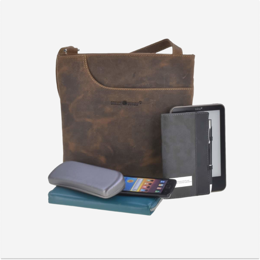 The Greenburry shoulder bag is made from high-quality leather and measures 25 cm in width and 26 cm in height, featuring a flat design. The "Vintage" model is available in an antique brown shade, giving it a classic and elegant appearance. This bag is designed to be practical and durable, making it ideal for daily use, whether you are going shopping, to work, or traveling. The main compartment is padded and closes with a zipper, ensuring the security of your personal items. Inside, the bag has several pockets and additional compartments for efficient organization of items such as your phone, wallet, keys, and other small accessories. Additionally, the bag has an exterior zippered pocket for quick access to essential items. The shoulder strap is adjustable, allowing you to adjust the length for maximum comfort. The leather used for this bag is of superior quality, offering both durability and a sophisticated look. The material is easy to maintain and resistant to wear and tear, ensuring long-term use. The Greenburry "Vintage" shoulder bag is an excellent combination of functionality and style, ideal for those who appreciate high-quality accessories with a classic design.