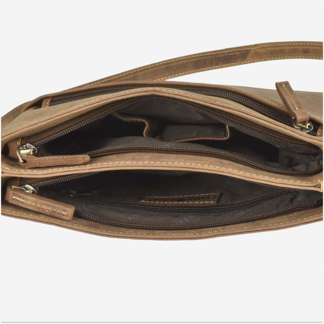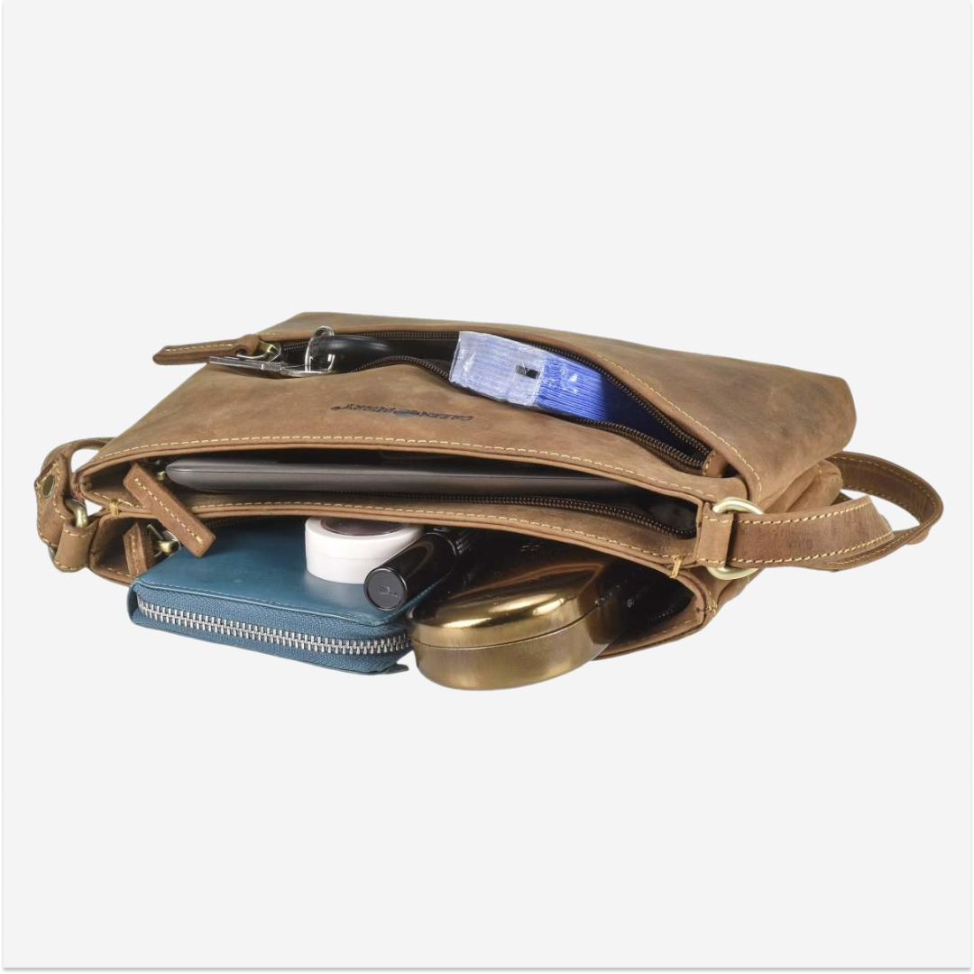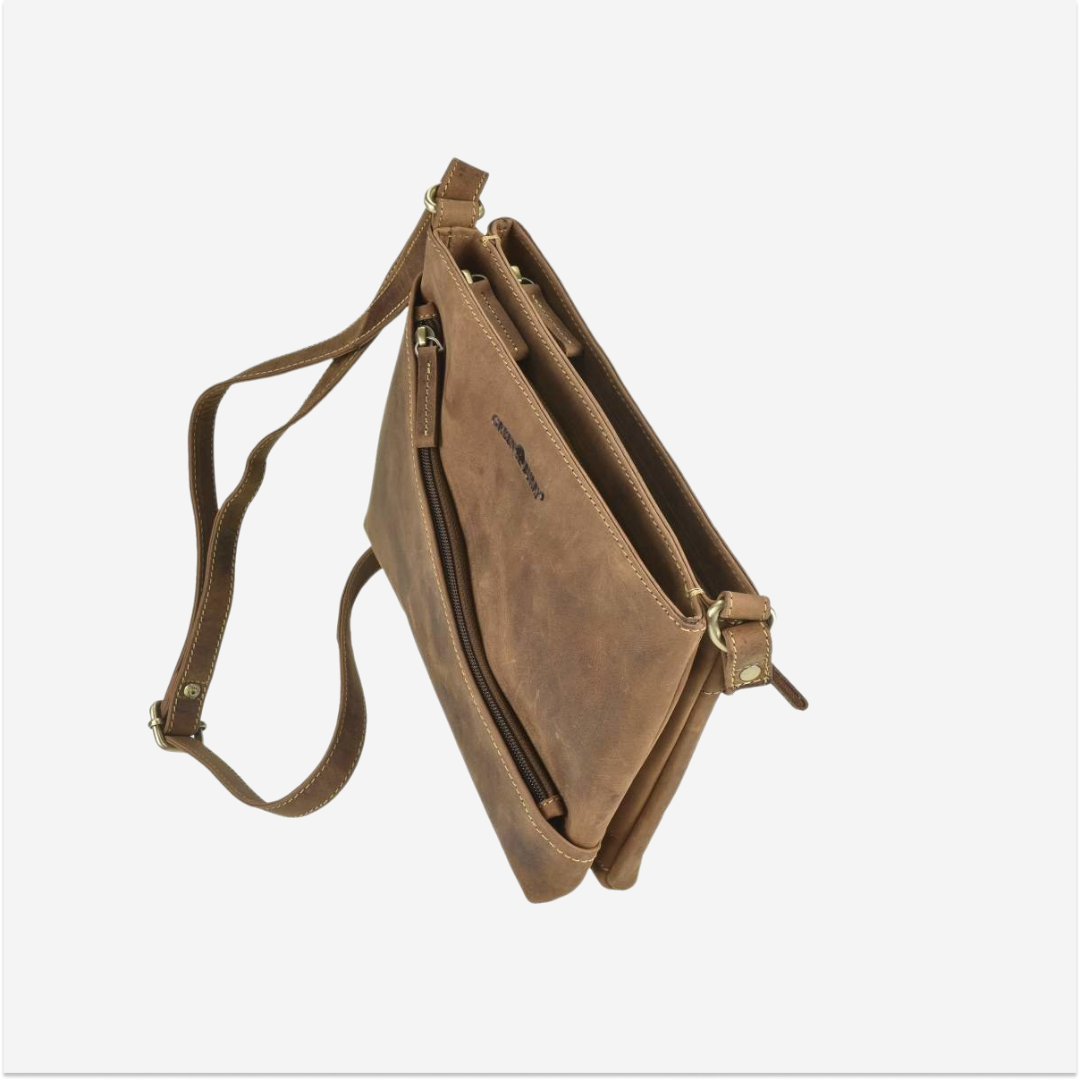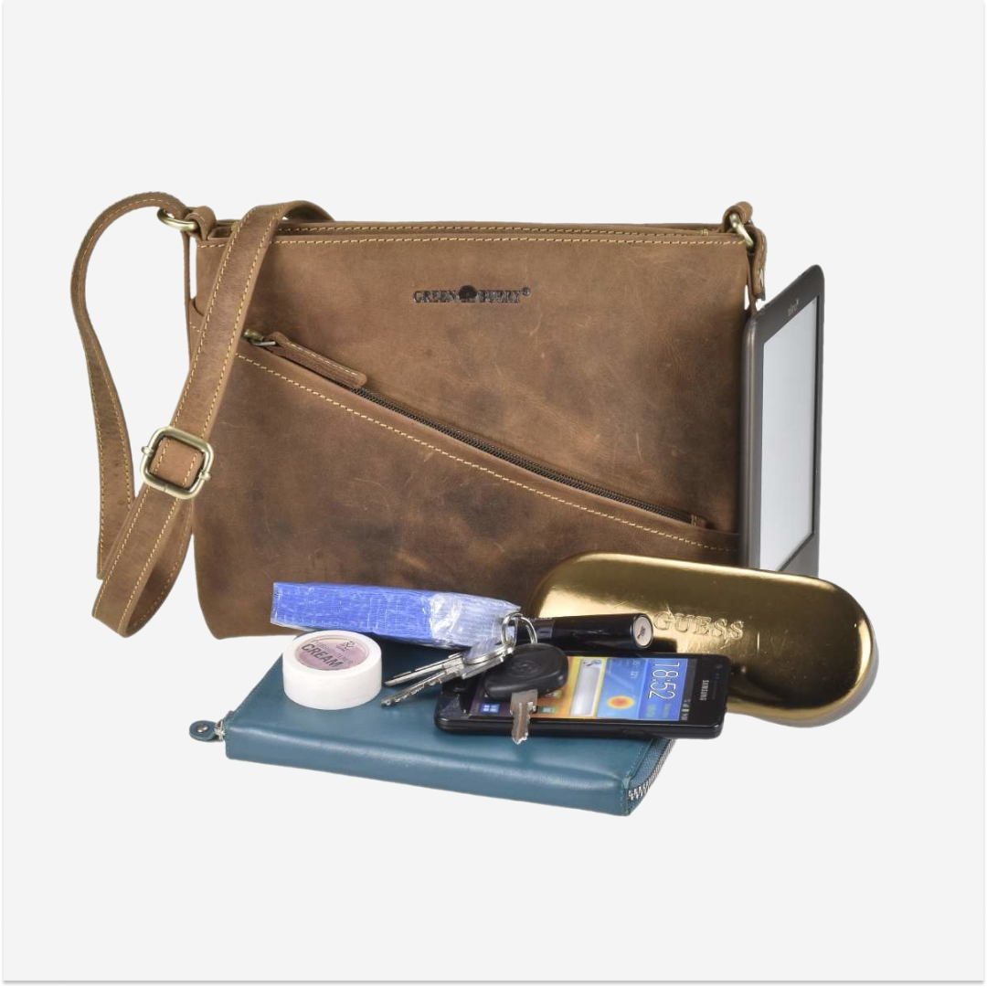 The Greenburry shoulder bag is made of high-quality leather and measures 27x20 cm. The "Vintage" model is available in an antique brown shade, giving it a classic and elegant look. This bag is designed to be practical and durable, ideal for everyday use whether you're shopping, working, or traveling. The main compartment is padded and closes with a zipper, ensuring the security of your personal belongings. Inside, the bag features multiple pockets and additional compartments for efficient organization of items such as your phone, wallet, keys, and other small accessories. The bag also has an exterior zippered pocket for quick access to essential items. The shoulder strap is adjustable, allowing you to customize the length for maximum comfort. The leather used for this bag is of superior quality, providing both durability and a sophisticated appearance. The material is easy to maintain and wear-resistant, ensuring long-lasting use. The "Vintage" shoulder bag from Greenburry is an excellent combination of functionality and style, perfect for those who appreciate high-quality accessories with a classic design..