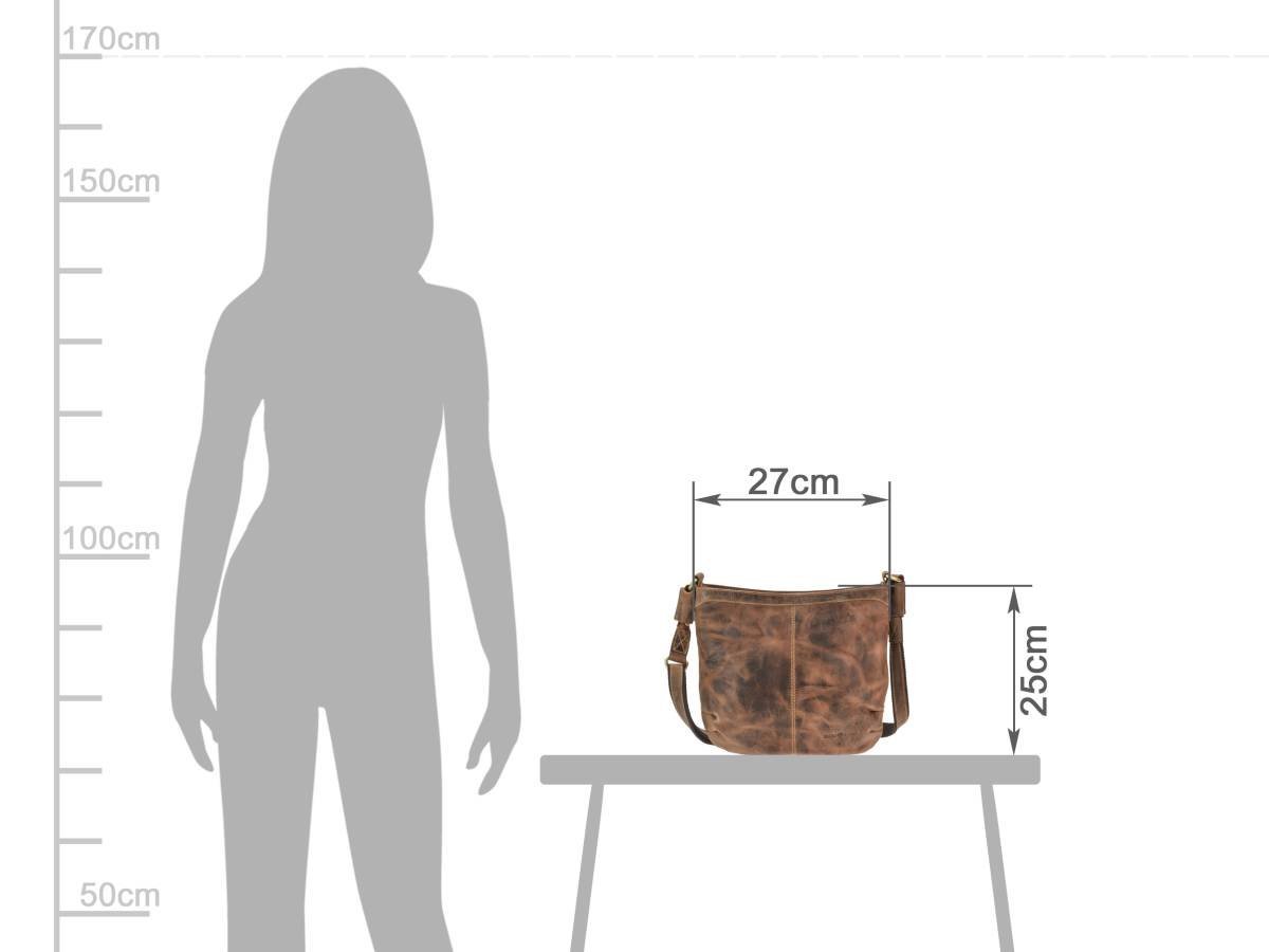 The leather shoulder bag with dimensions of 27x25 cm, in a "Vintage" style and antikbraun color (model number 1655A-25), is a practical and elegant accessory for daily use.