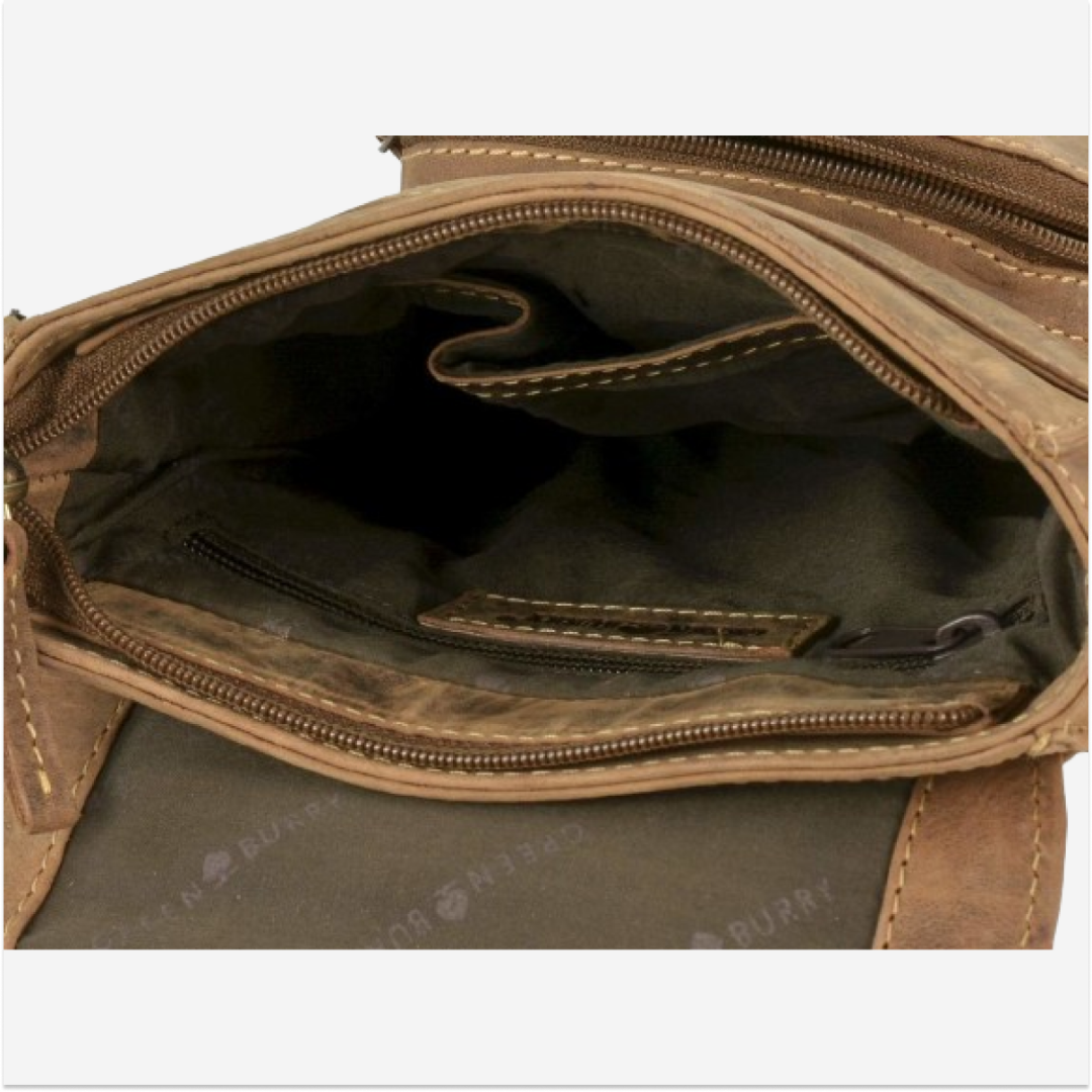 The shoulder bag is made of high-quality leather, measuring 18 cm in length and 25 cm in width, with a vintage design in antique brown.