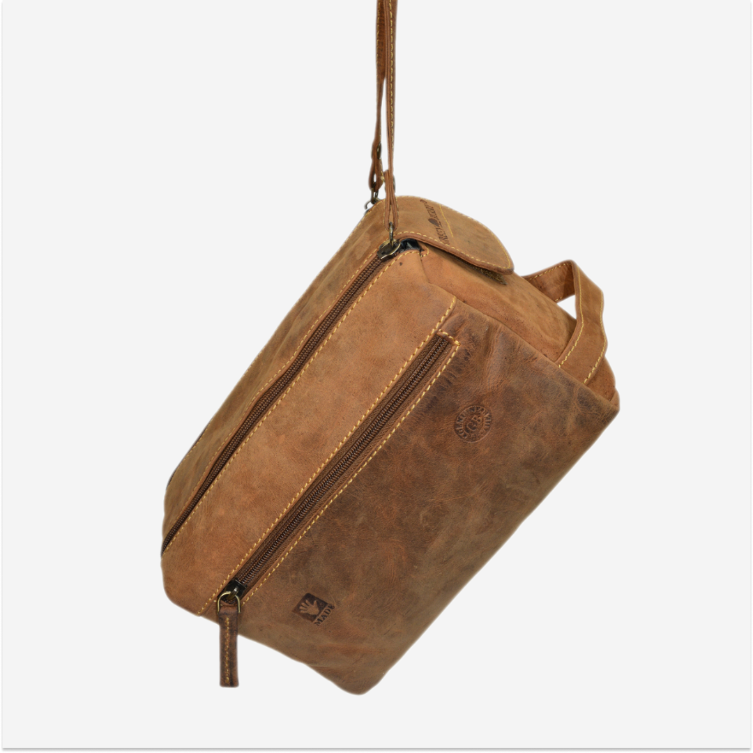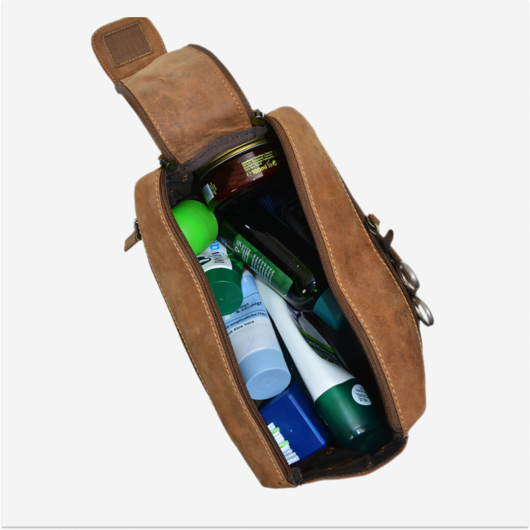 - Color: Antique brown, adding a rustic and authentic charm to the toiletry pouch.