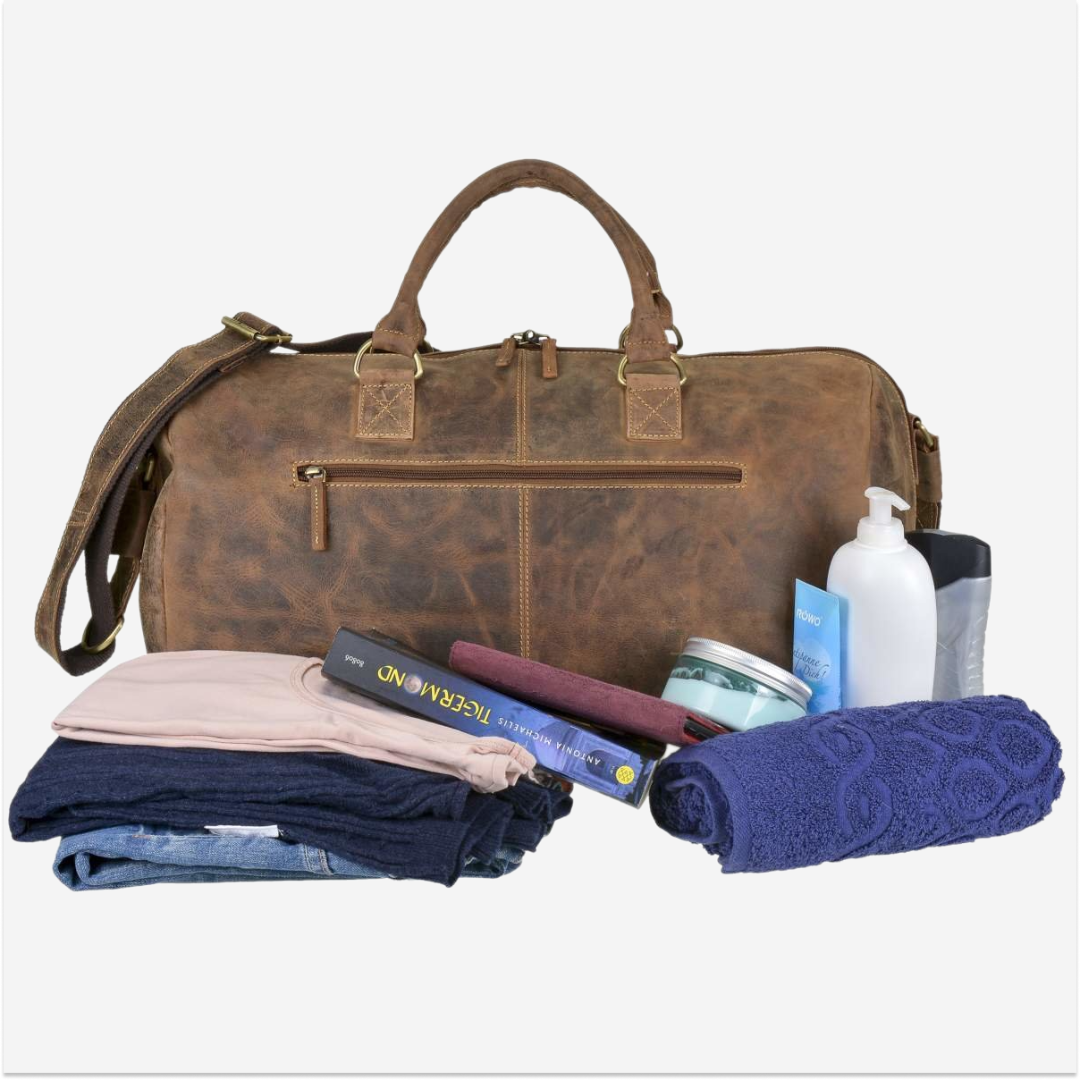 The leather travel bag with dimensions of 52x27 cm in "Vintage" style and antique brown color (model number 1606-25) is a practical and elegant accessory for travel.