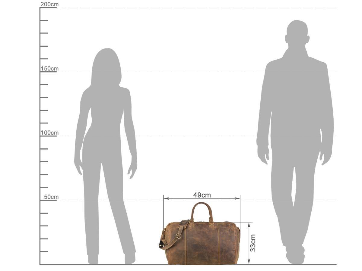 The leather travel bag measuring 49x33 cm in "Vintage" style and antikbraun color (model number 1675-25) is a practical and elegant accessory for travel.