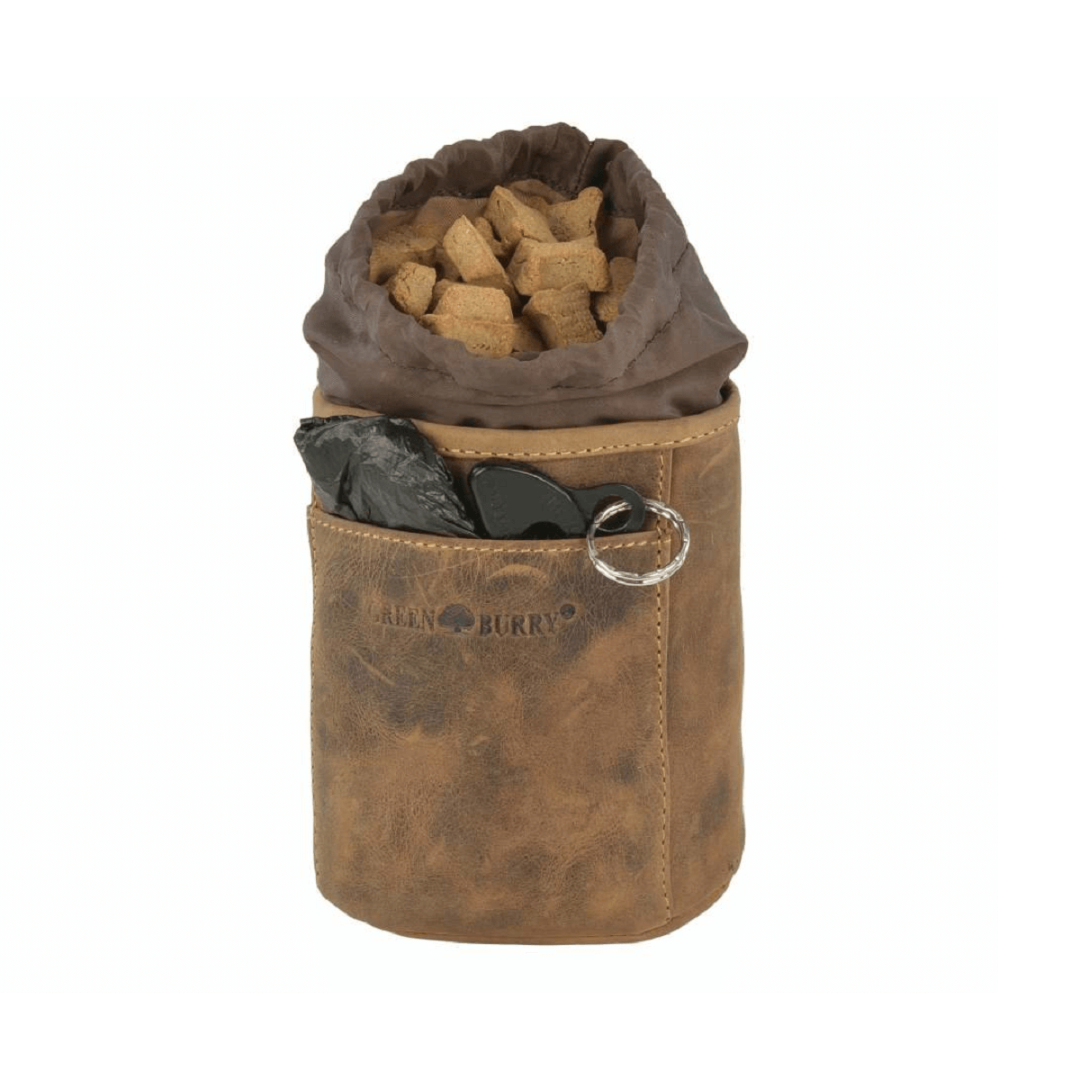 A treat pouch made of leather in the "Vintage Dogs" style with model number 1601-25 is a practical and stylish accessory for dog owners.