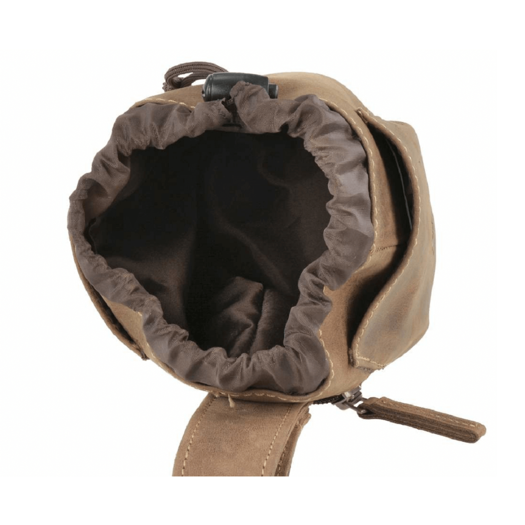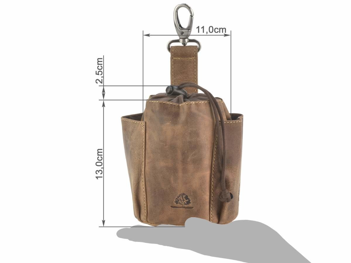 The leather treat pouch with carabiner "Vintage Dogs" (model number 1604-25) is a practical and stylish accessory for dog owners.