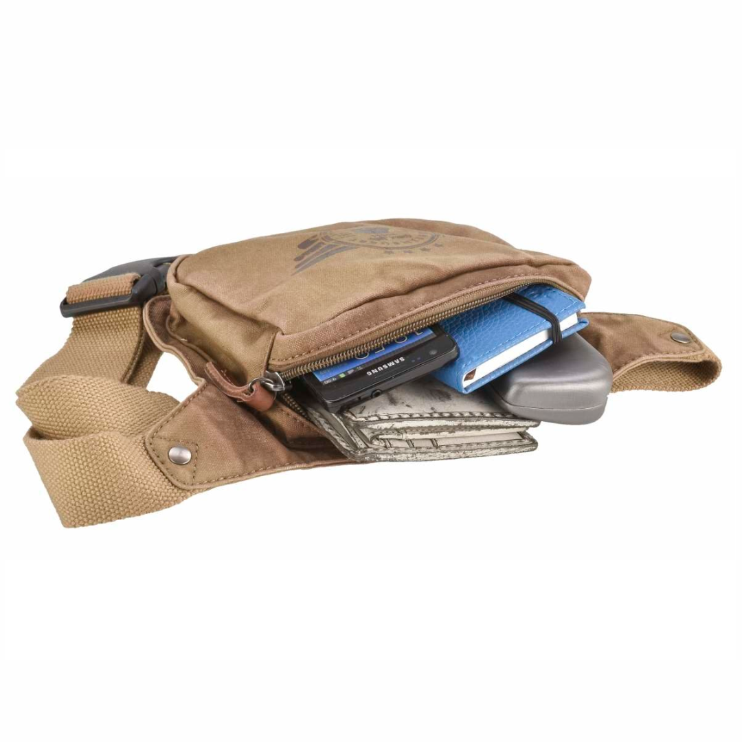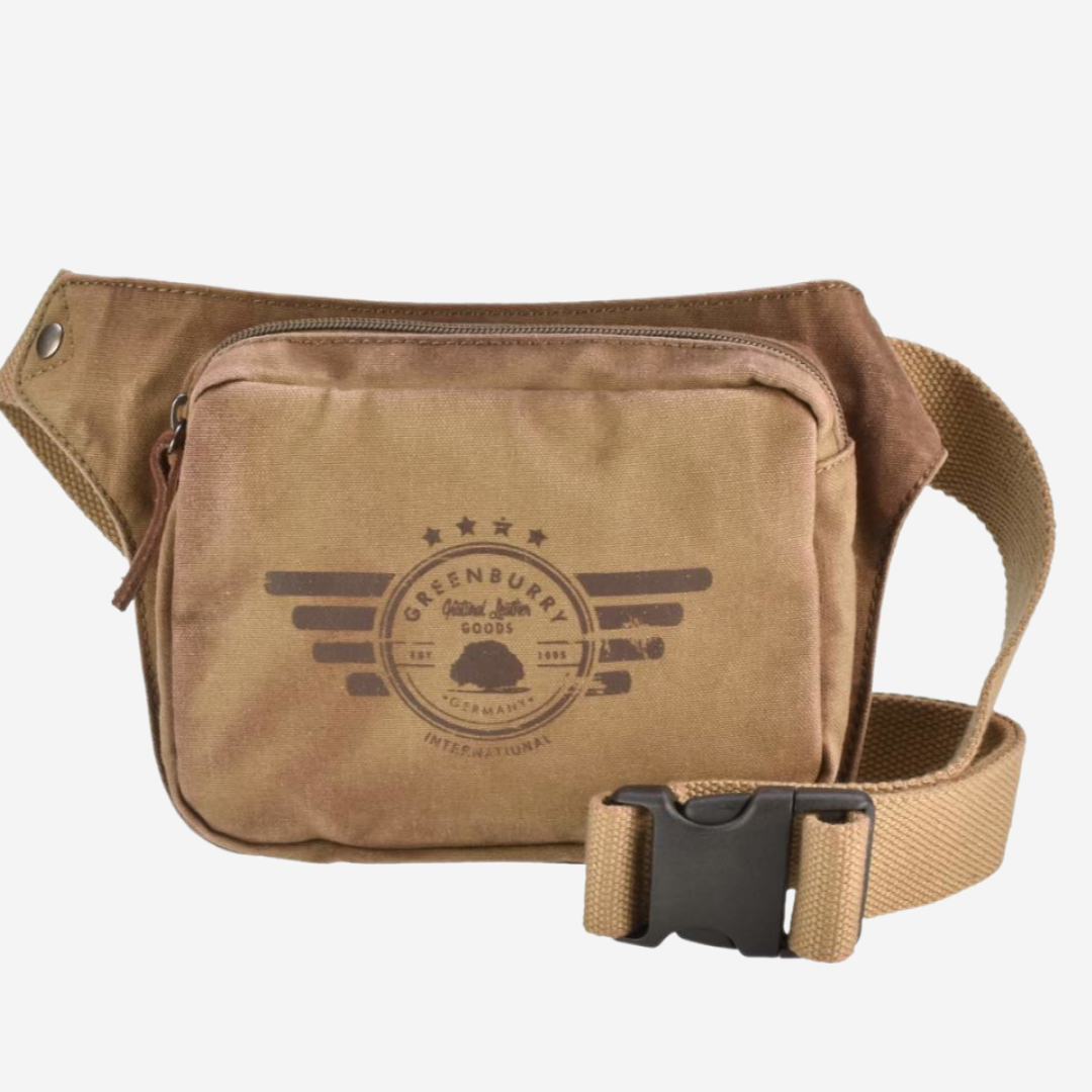 The waist bag is made from high-quality canvas and features an aviator-inspired design, giving it an elegant and practical appearance. Its compact dimensions make it ideal for carrying daily essentials such as a phone, wallet, keys, and other small accessories. The aviator style and camel color lend it a casual and sophisticated look, suitable for various occasions.