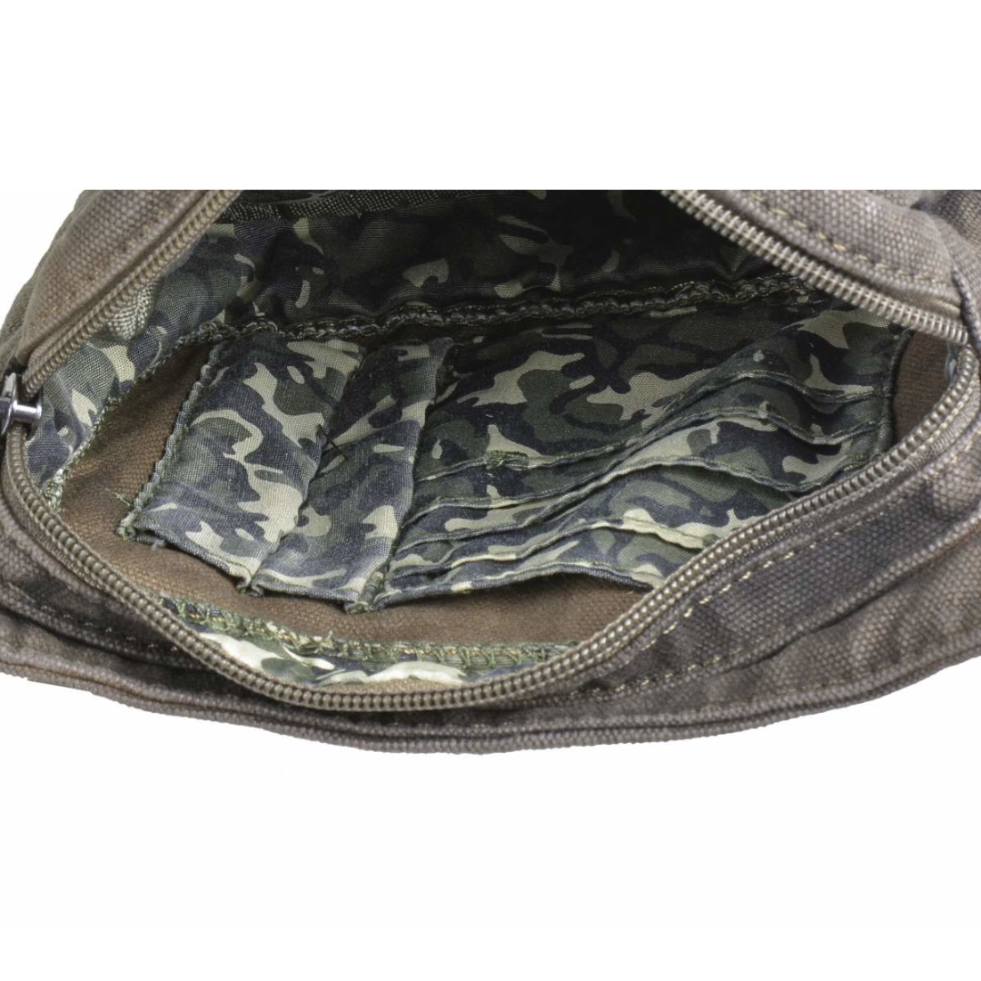 This khaki canvas "Aviator" waist bag is the ideal choice for those seeking a practical, durable, and stylish accessory.