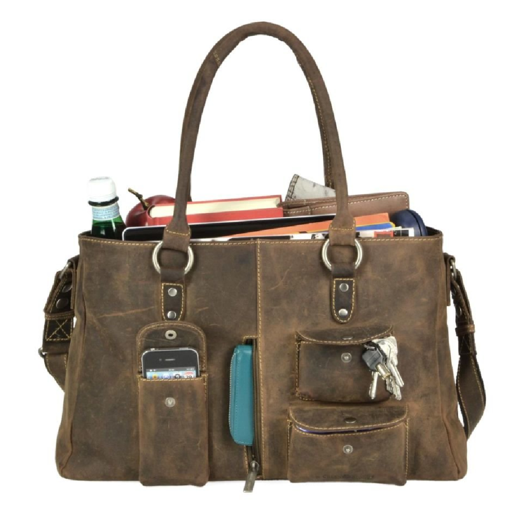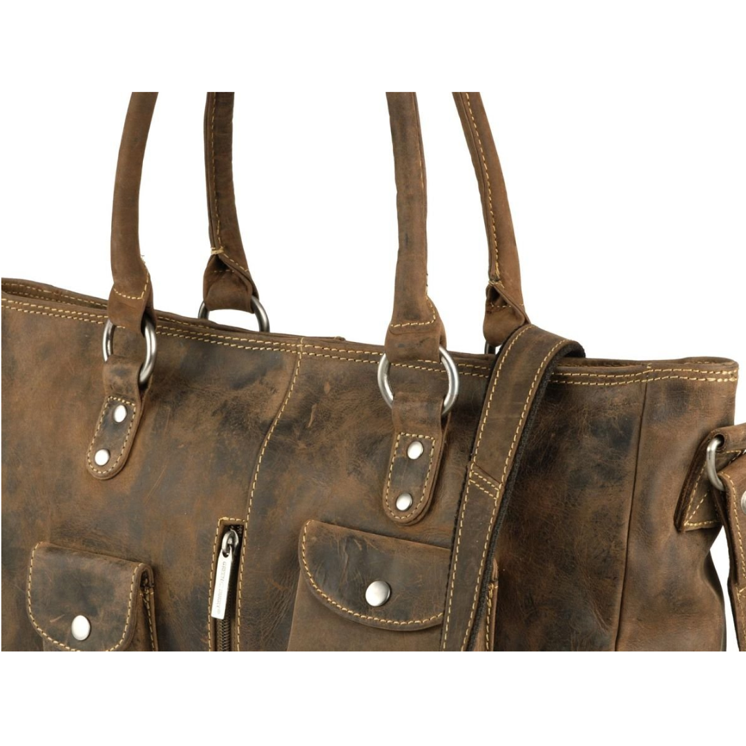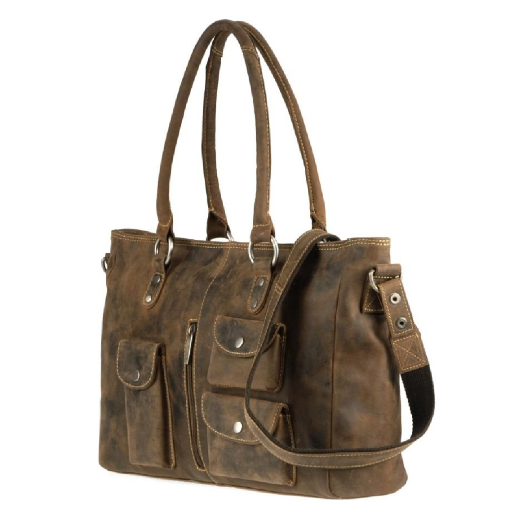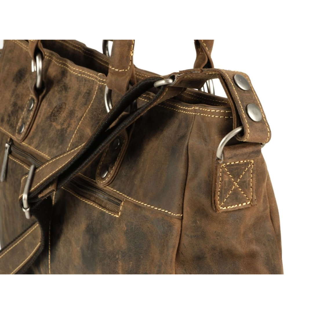 This antique brown leather "Vintage" shopper bag is the ideal choice for those seeking a practical, durable, and stylish accessory.
