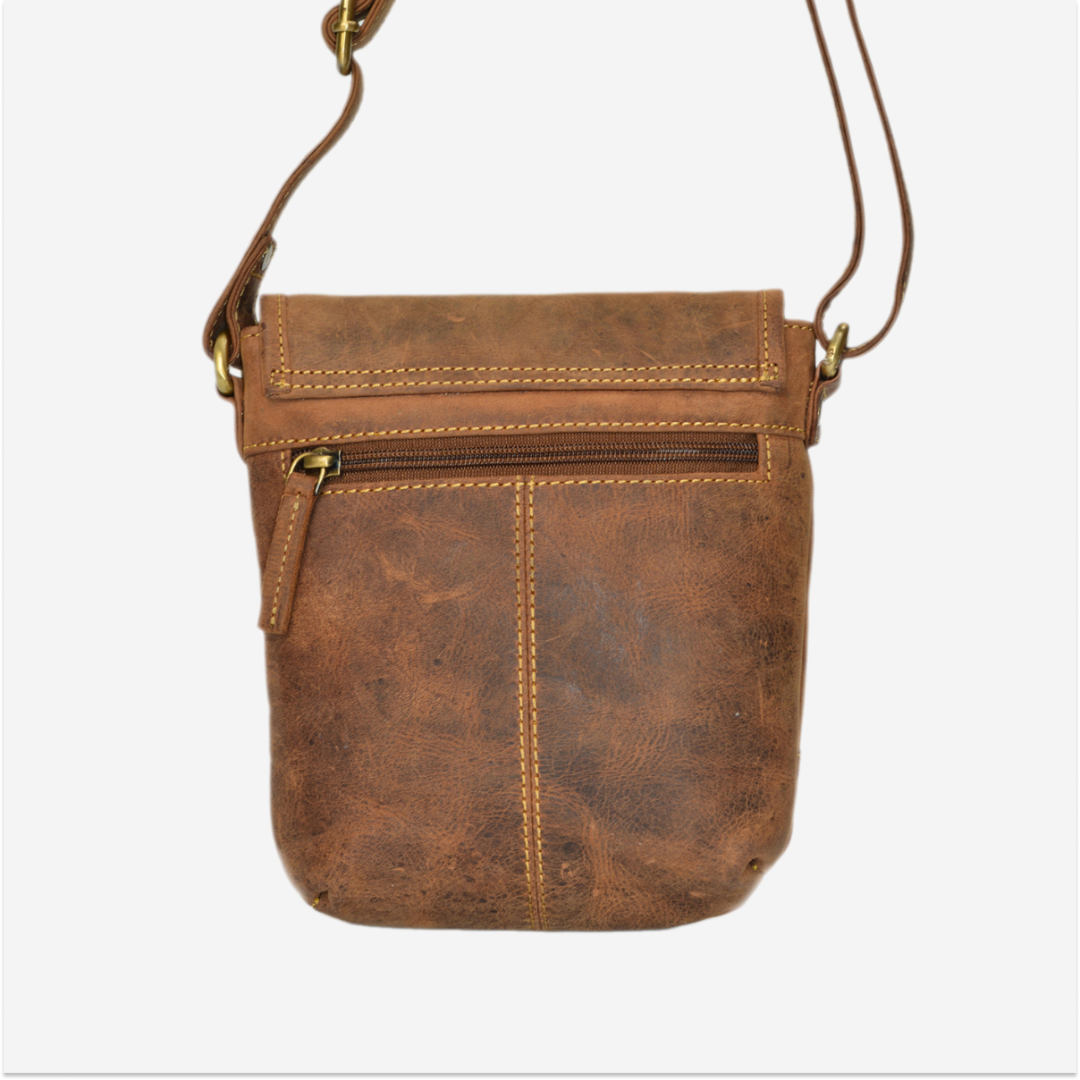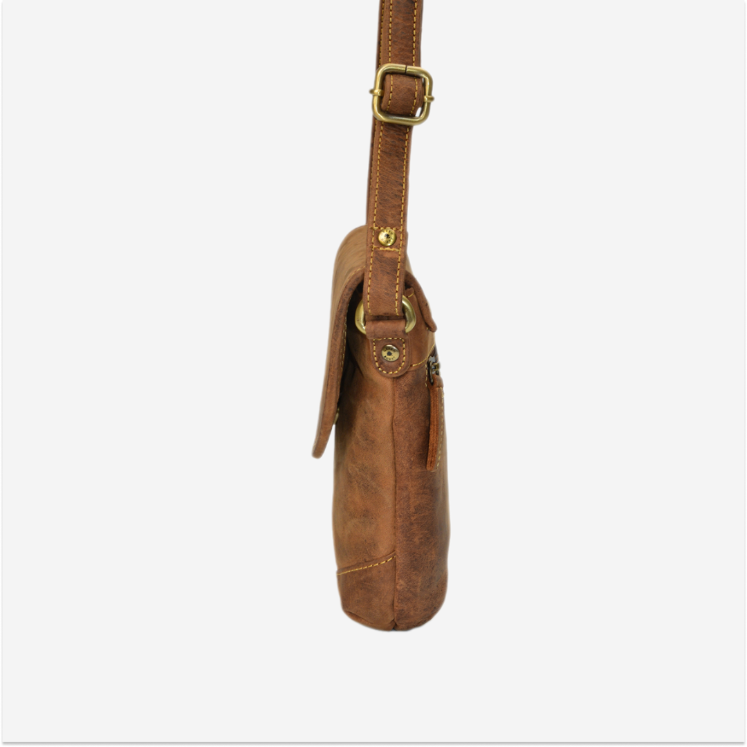 Shoulder bag is made from high-quality leather and features a vintage design in an antiqued brown shade. It is ideal for those who appreciate practical and elegant accessories, suitable for various occasions.