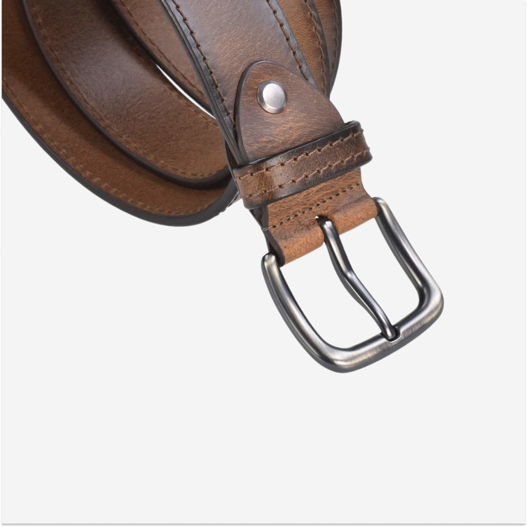 This is a greenburyy belt that is 38 mm wide and 115 cm long. Greenburry is a cognac brown, elegant and versatile color that fits well with a variety of outfits, both casual and formal. The belt is suitable for people with a waist size of approximately 115 cm. Usually, belts of this size are made from leather or high-quality synthetic material, ensuring durability and a pleasant appearance. It may have a simple or decorative buckle, depending on the specific design.