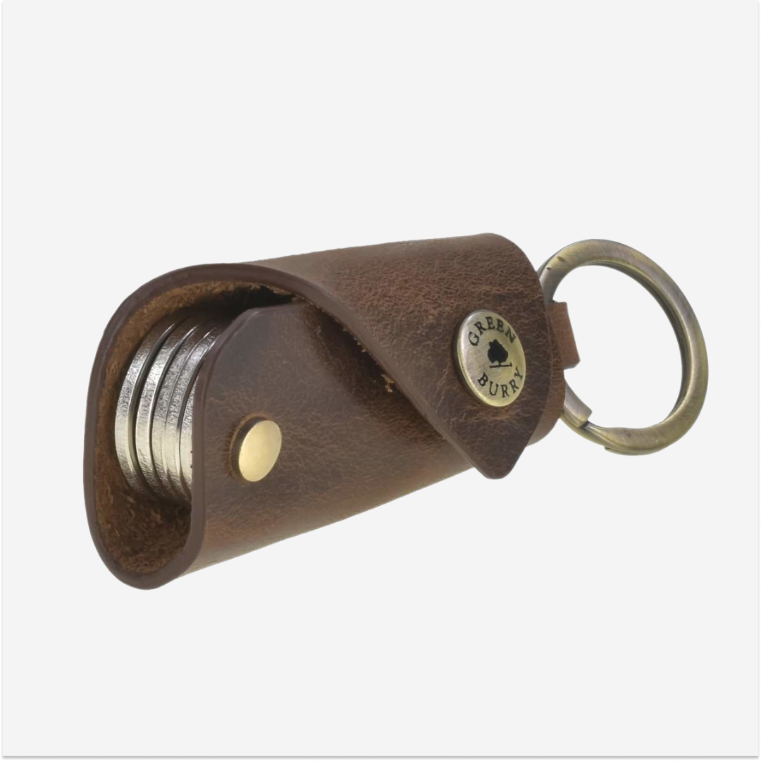 The Greenburry key case is made from high-quality leather and measures 10 cm in width and 4 cm in height. The "Vintage" model is available in an antique brown shade, giving it a classic and elegant look. This key case is designed to be practical and durable, making it ideal for daily use. The key case can hold up to 6 keys, providing an organized and secure solution for storing them. The interior is lined and features sturdy metal rings to secure the keys. It closes with a zipper, ensuring the security of your keys. The leather used for this key case is of superior quality, offering both durability and a sophisticated appearance. The material is easy to maintain and resistant to wear, ensuring long-lasting use. The "Vintage" key case from Greenburry represents an excellent combination of functionality and style, perfect for those who appreciate high-quality accessories with a classic design.