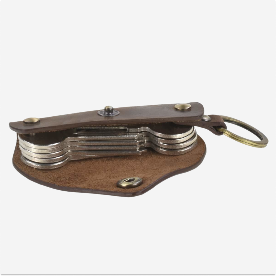 The Greenburry key case is made from high-quality leather and measures 12 cm in width and 4 cm in height. The "Vintage" model is available in an antiqued brown shade, giving it a classic and elegant look. This key case is designed to be practical and durable, ideal for daily use. The case can hold up to 8 keys, providing an organized and secure solution for keeping them. The interior is lined and features sturdy metal rings to secure the keys. It closes with a zipper, ensuring the security of your keys. The leather used for this case is of superior quality, offering both durability and a sophisticated appearance. The material is easy to maintain and resistant to wear, ensuring long-lasting use. The "Vintage" key case from Greenburry is an excellent combination of functionality and style, ideal for those who appreciate high-quality accessories with a classic design.