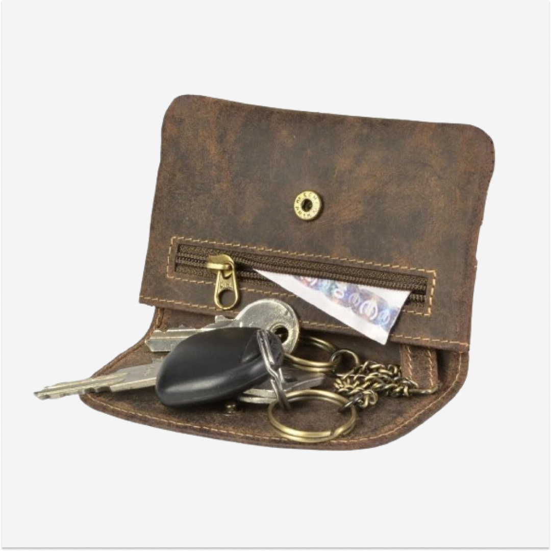 The leather key case is perfect for personal use or as a special gift for those who appreciate quality and classic design.