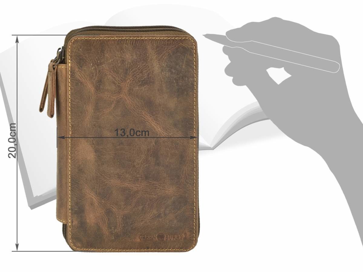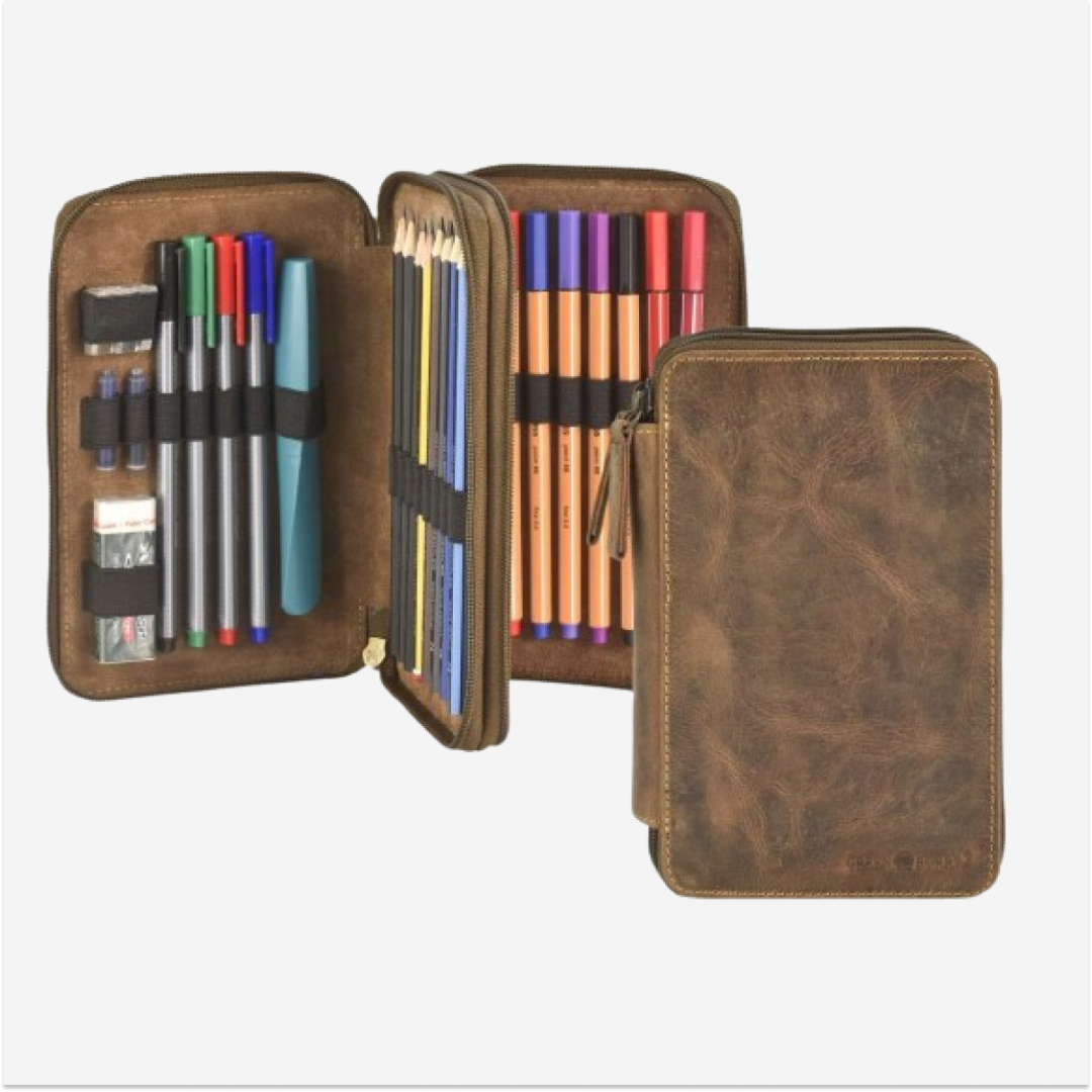 The Greenburry pen case is made of high-quality leather and features two compartments. The "Vintage" model comes in an antiqued brown color, giving it a classic and elegant appearance. This pen case is designed to be practical and durable, making it ideal for daily use whether you're at the office, school, or traveling. The compartments are spacious and ensure the safe storage of pens or other writing instruments. The leather used for this pen case is of superior quality, offering both durability and a sophisticated look. The material is easy to maintain and resistant to wear, ensuring long-lasting use. The "Vintage" pen case from Greenburry represents an excellent combination of functionality and style, perfect for those who appreciate high-quality accessories with a classic design.