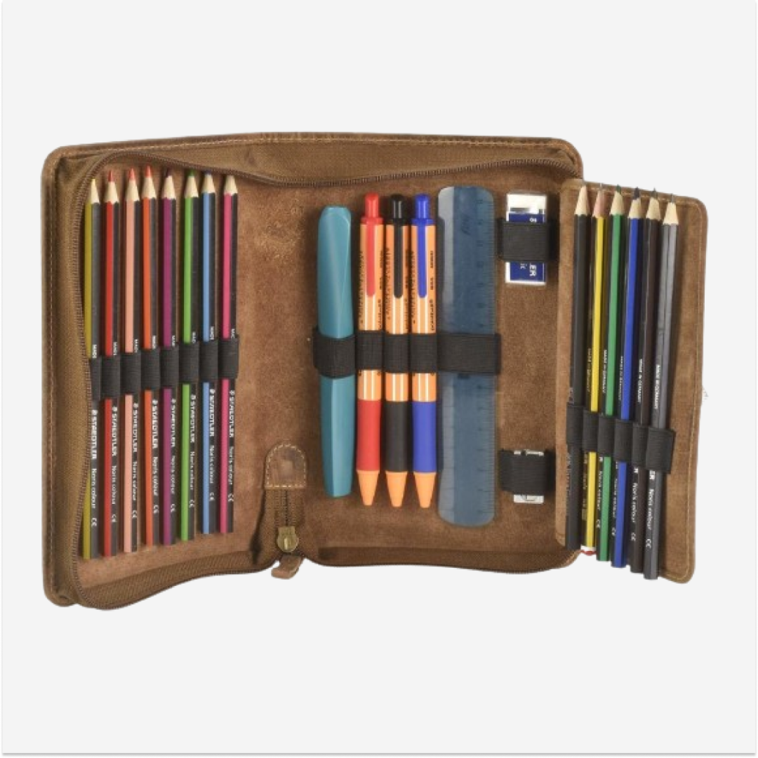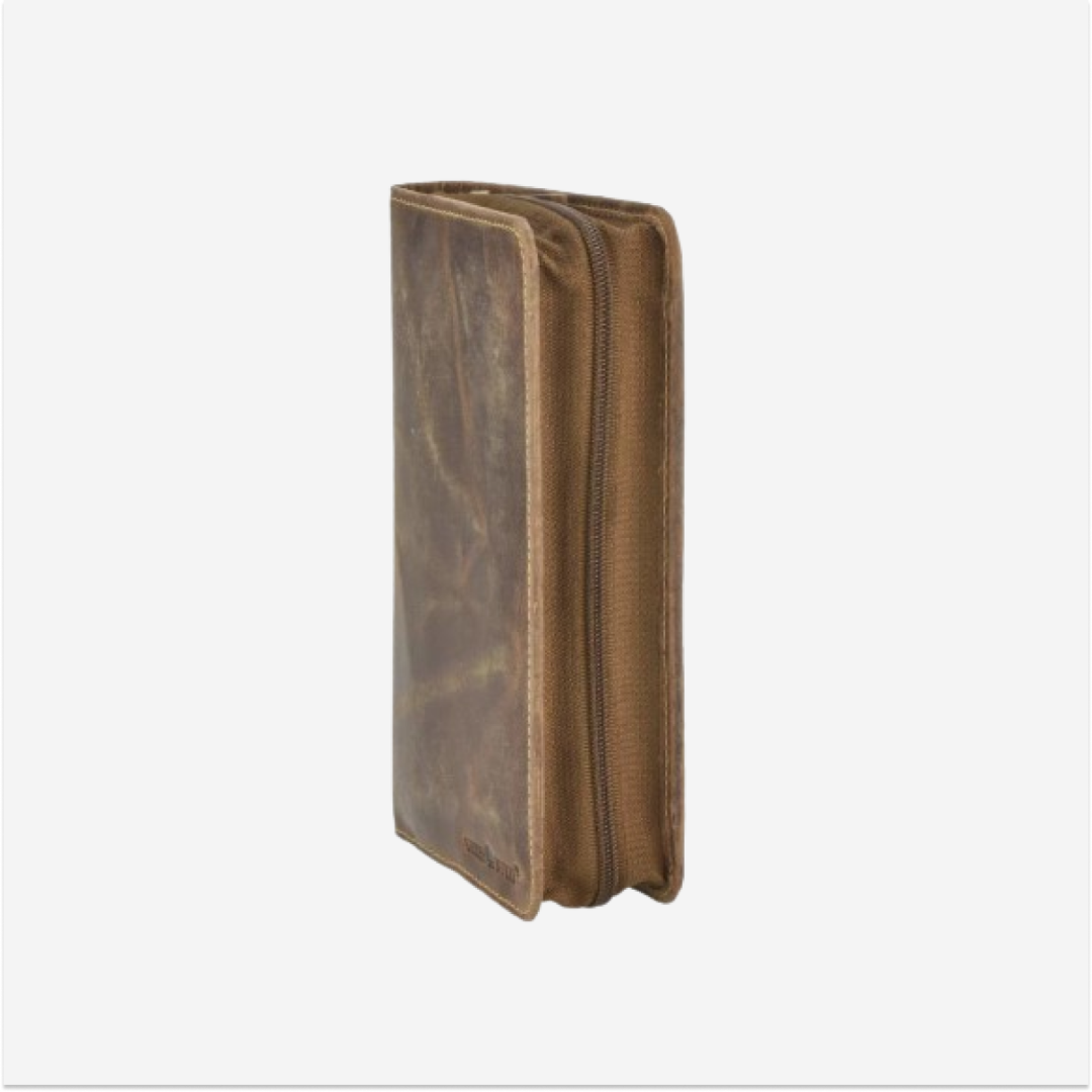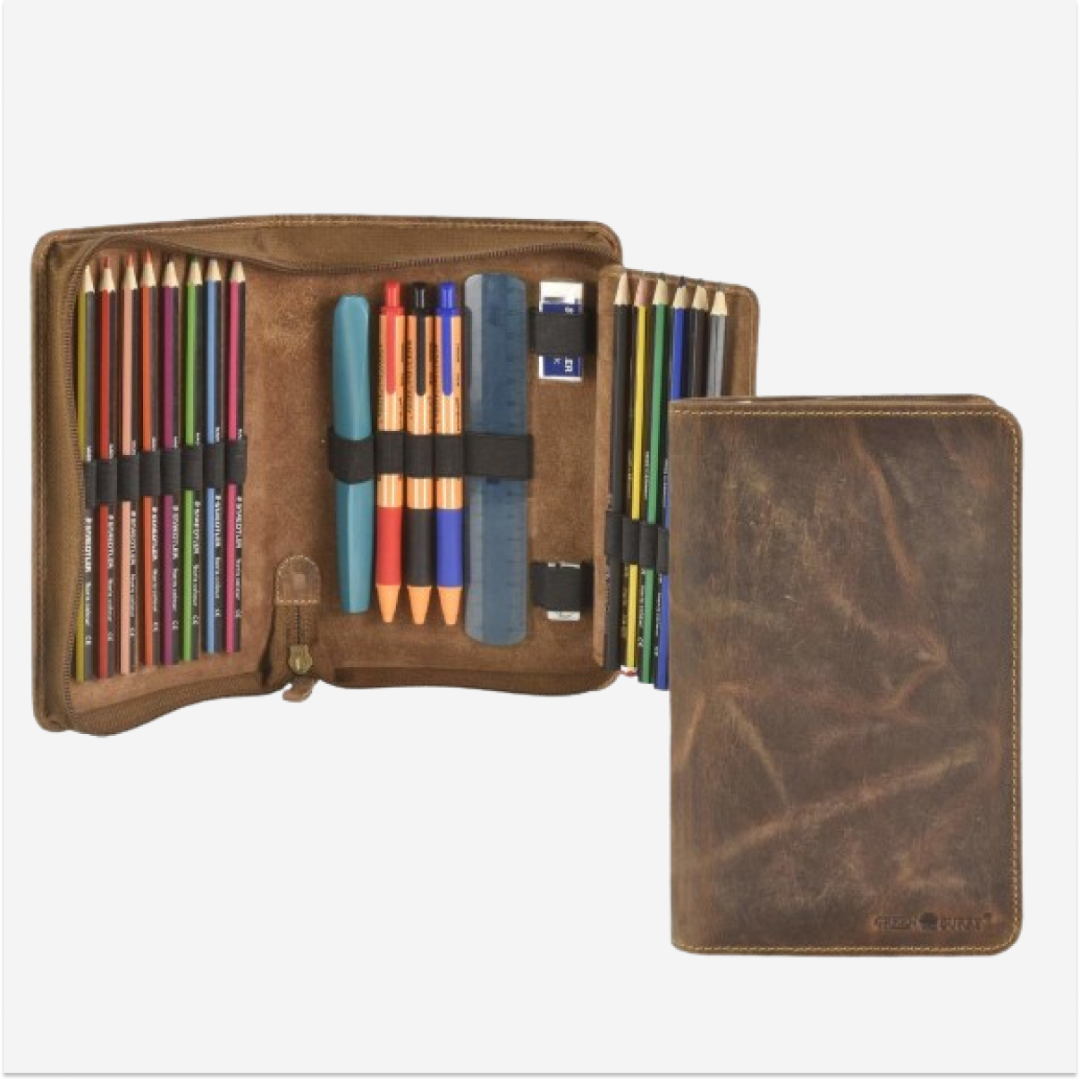 The Greenburry pen case is made from high-quality leather and features a flap closure. The "Vintage" model is available in an antiqued brown shade, giving it a classic and elegant appearance. This pen case is designed to be practical and durable, making it ideal for everyday use, whether you are going to the office, school, or traveling. The flap ensures the secure storage of pens or other writing instruments. The leather used for this pen case is of superior quality, offering both durability and a sophisticated look. The material is easy to maintain and resistant to wear, ensuring long-lasting use. The "Vintage" pen case from Greenburry represents an excellent combination of functionality and style, perfect for those who appreciate high-quality accessories with a classic design.