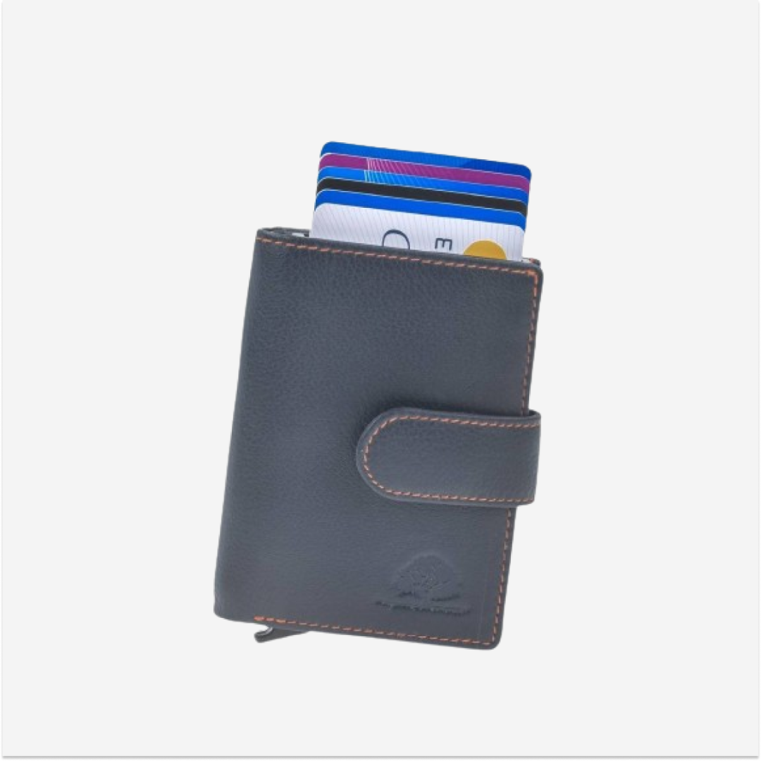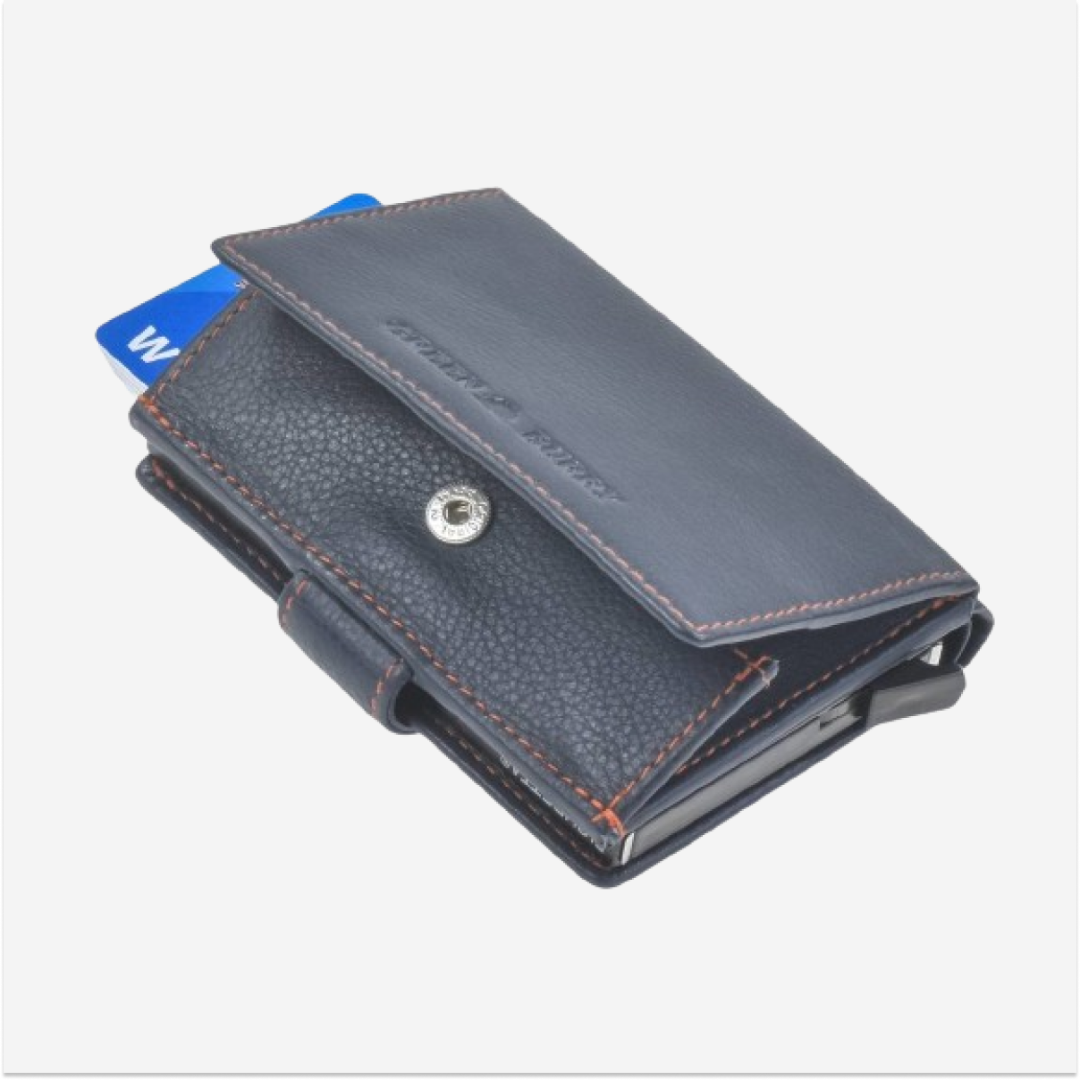 The "Kings Nappa" leather card holder 1150-27 by Greenburry is the ideal choice for those seeking an elegant, functional, and durable accessory for managing cards, money, and coins.