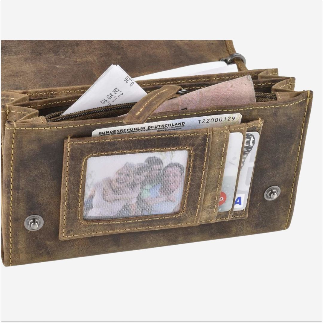 The leather wallet, measuring 17x10 cm and featuring a chain, model "Vintage" in antique brown 1820-S-25, is an elegant and durable accessory, ideal for those who appreciate a classic and functional design.