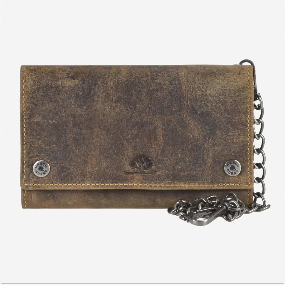 Design: The wallet features a "Vintage" style, accentuated by an attached chain that not only adds a security element but also provides a distinctive decorative detail. The chain can be attached to a belt to prevent the wallet from being lost.
