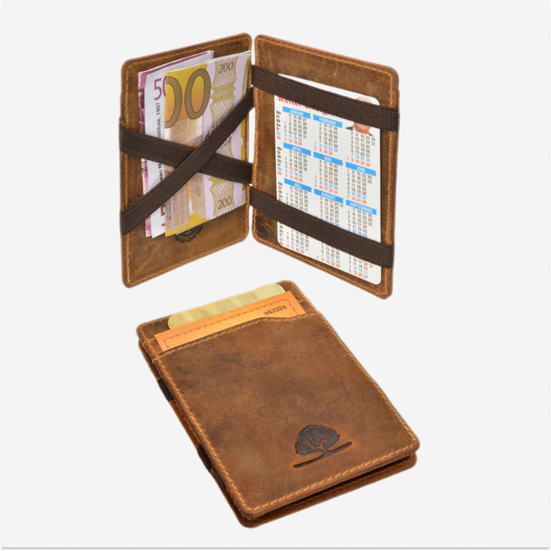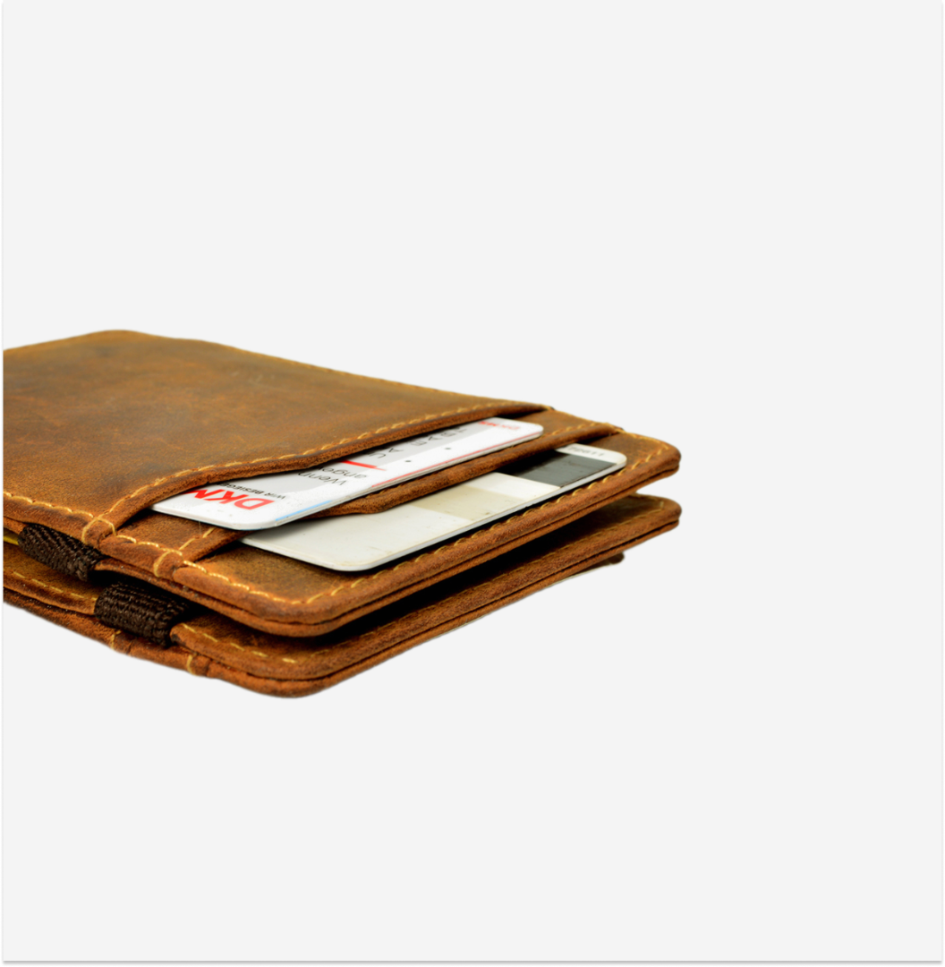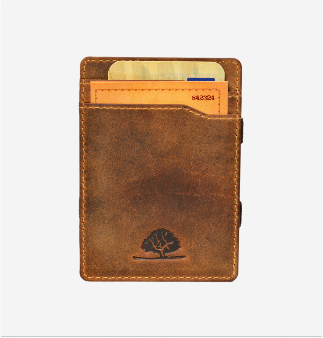 - With a magic effect: just insert a banknote or a business card and close the wallet - everything will be securely packed