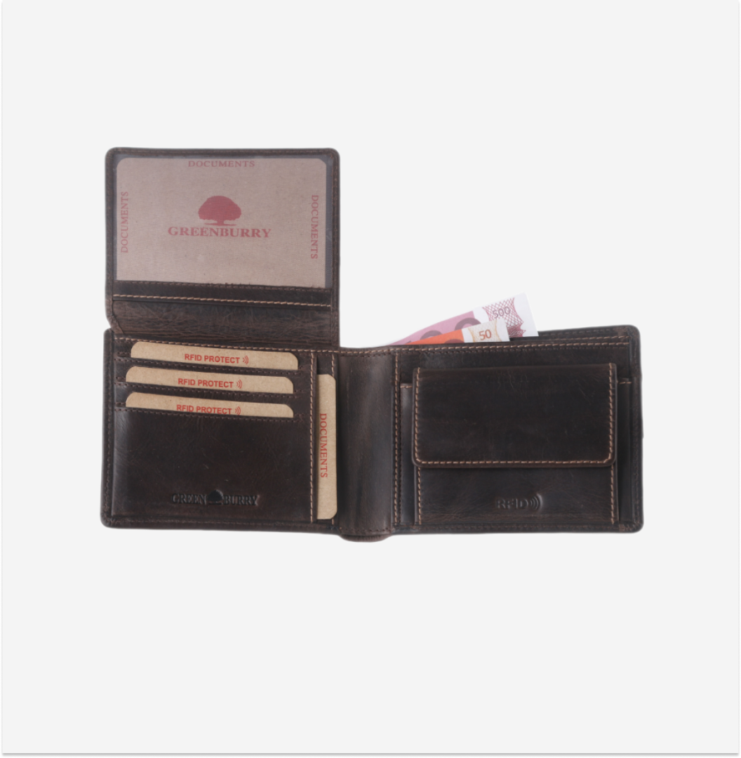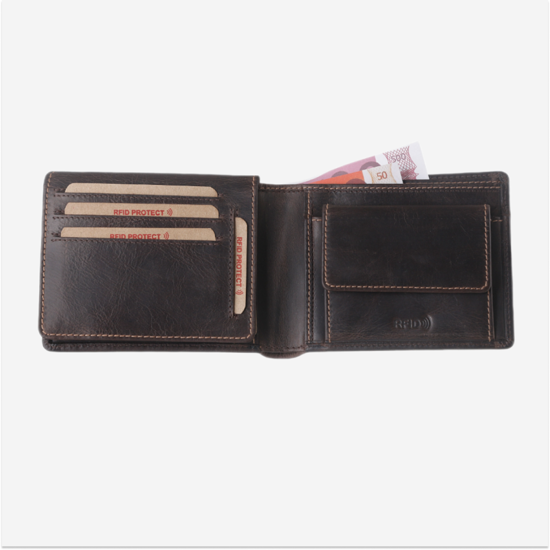 Leather Wallet 13x10cm with RFID Protection "Tornado" in Dark Brown