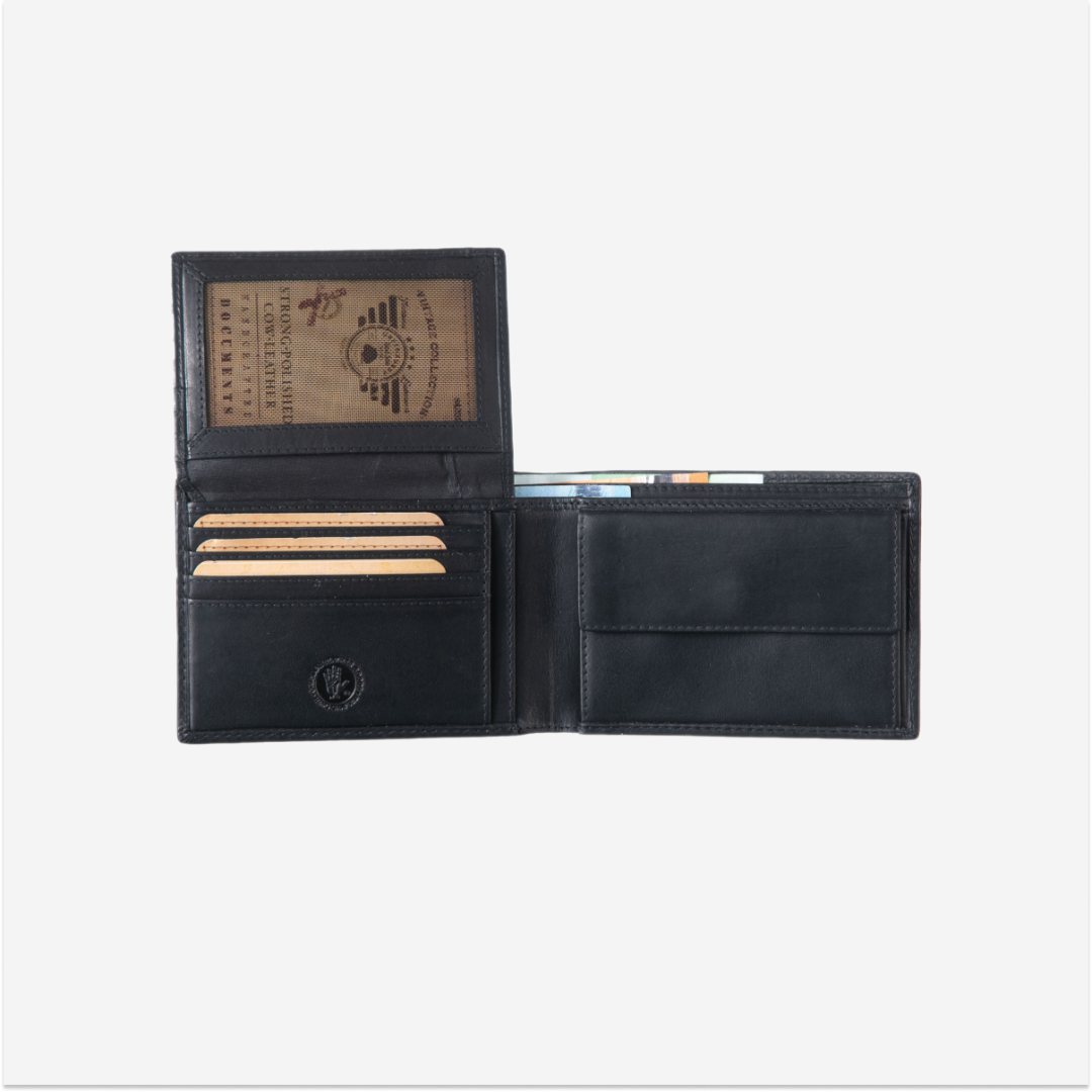 The "Pure Black" Greenburry 1120-20 wallet is the ideal choice for those seeking an elegant, functional, and durable accessory for managing money and cards.