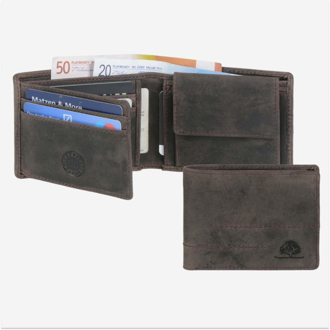 - Color: Tobacco brown, a shade that emphasizes the vintage look and gives the wallet a timeless and sophisticated appearance.
