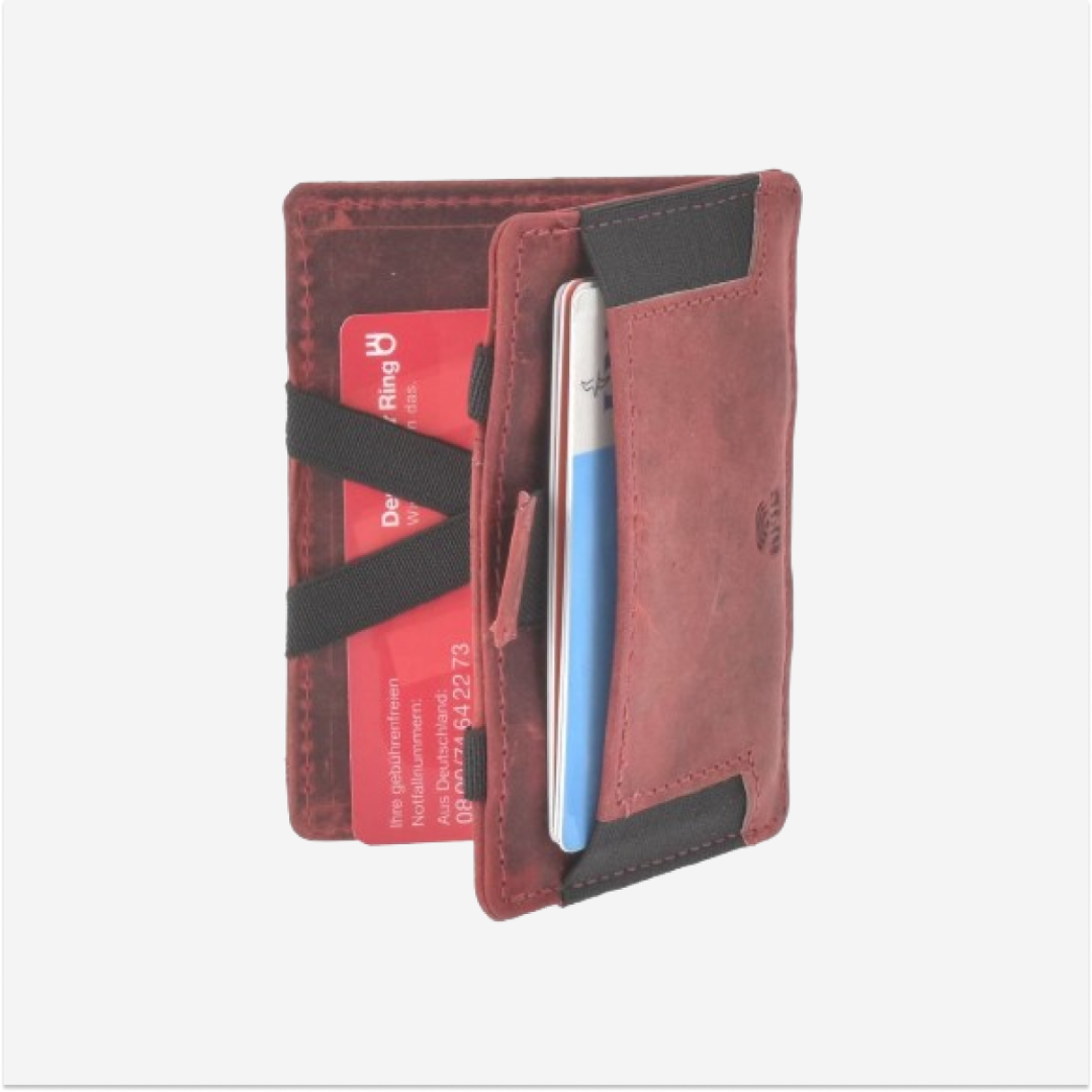 - Special Feature: It features a unique folding system where banknotes or cards are secured with elastic bands. By closing the wallet, the contents are held securely.