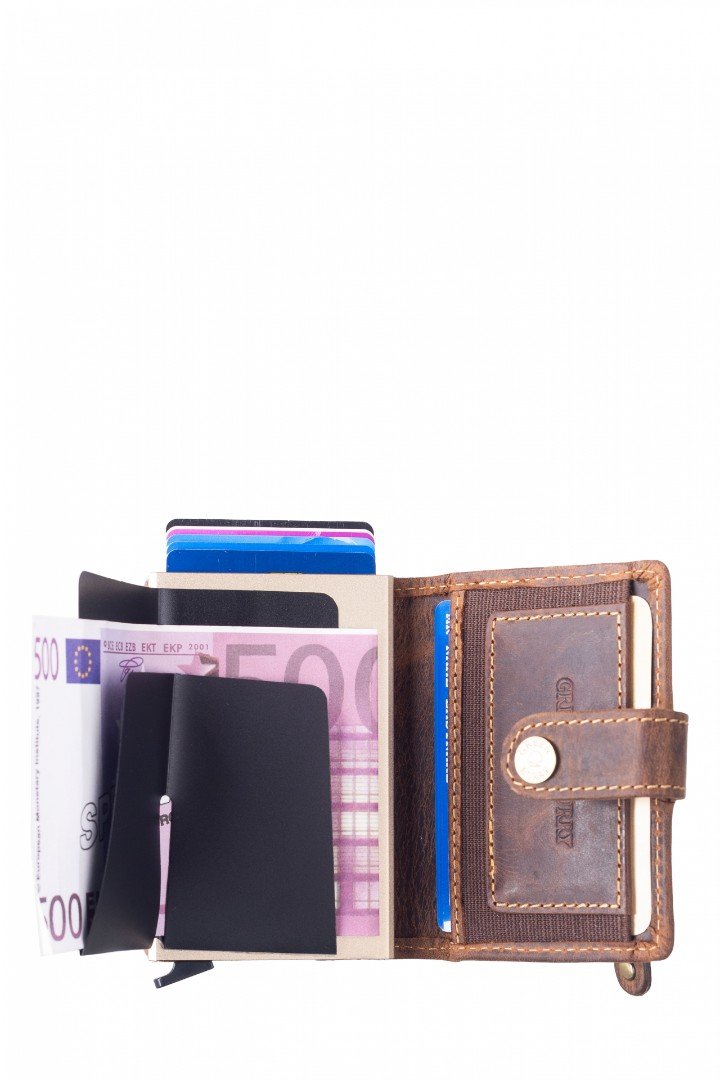 The “Vintage” wallet, model 1450-25, is a compact wallet made of genuine leather, featuring an antiqued vintage finish and modern elements that combine classic aesthetics with practical functionality.