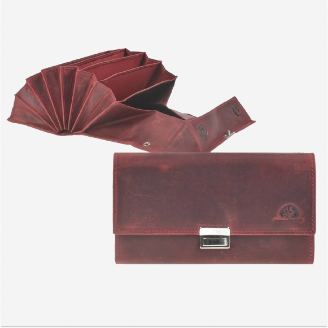 The "Vintage" Wallet, made of genuine leather with dimensions of 17x9 cm, model 1785-26, stands out for its classic design and antique red color.