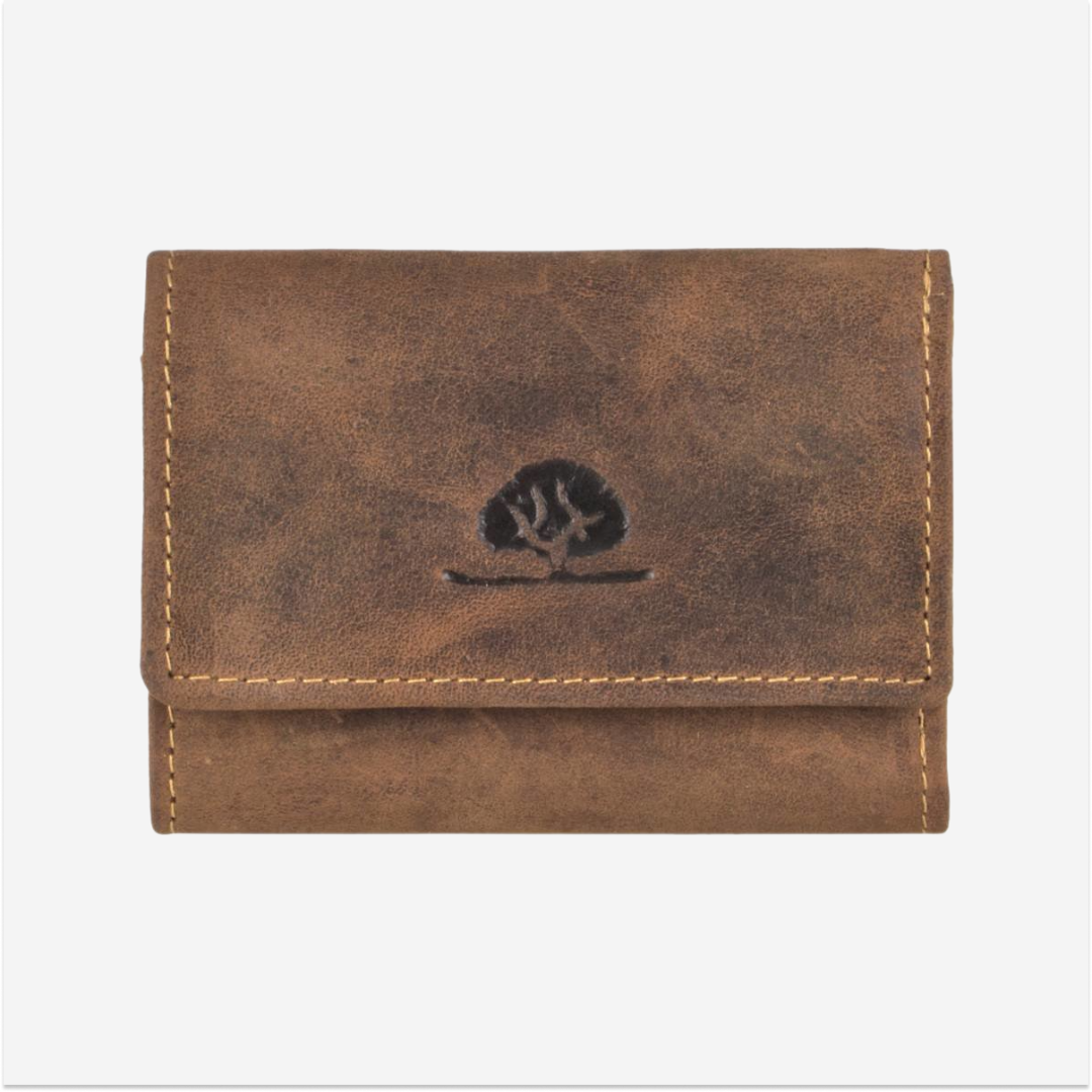 This leather wallet, measuring 9x7 cm and featuring the "Vintage" antiqued brown design, stands out for its compact design and exceptional elegance.