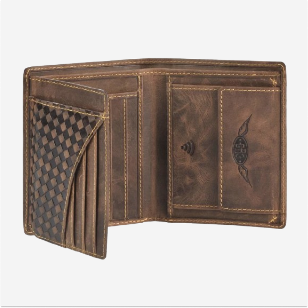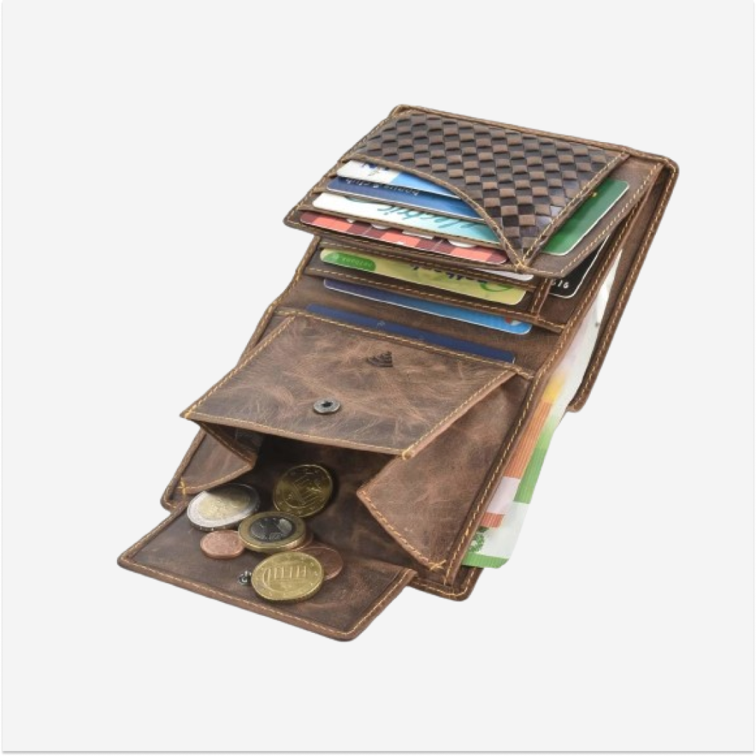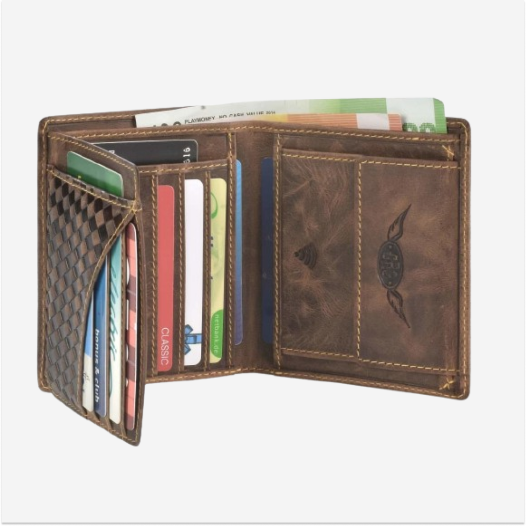 The Bristol "Racing Collection" leather wallet in antique brown, measuring 10x12 cm, is a high-quality accessory that combines vintage style with modern functionality. Ideal for daily use, this wallet offers ample space for cards, cash, and other essentials, while also featuring a secure and practical design.