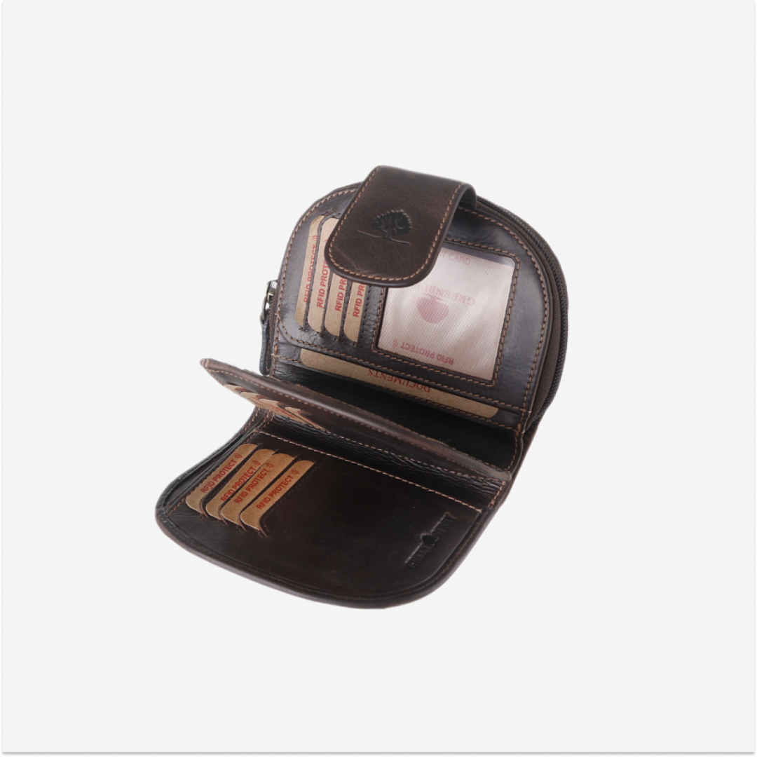 Leather Wallet 11x13cm with Zipper "Tornado" in Dark Brown