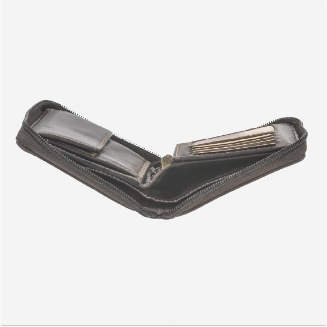 Leather Wallet 10x13cm with Zipper "Tornado" in Dark Brown