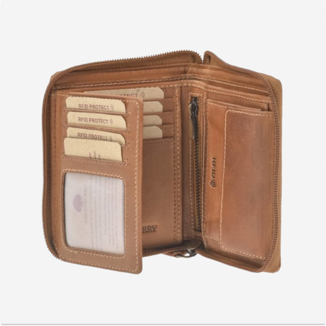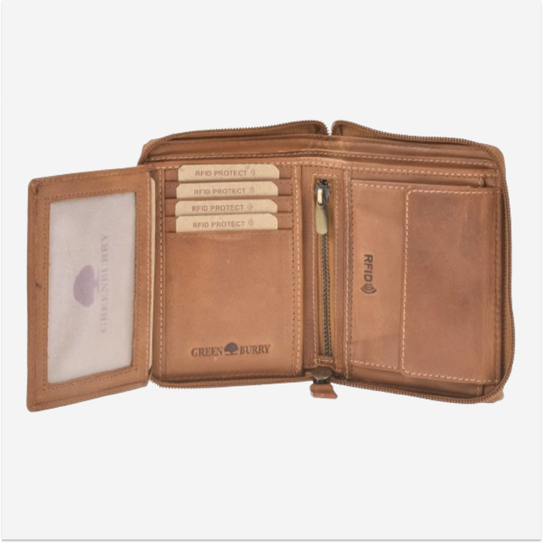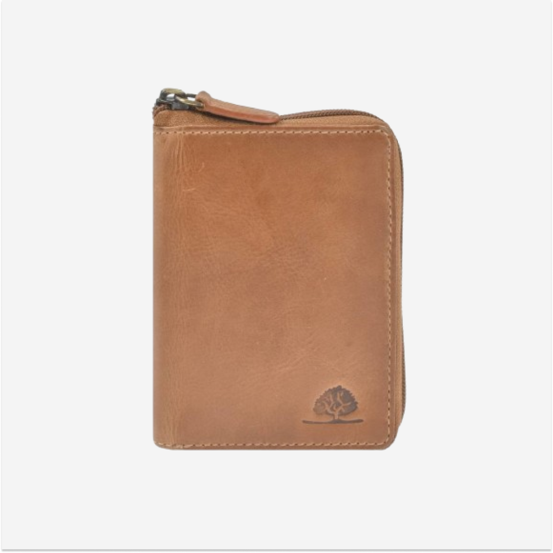 Leather Wallet 10x13cm with Zipper "Tornado" in Cognac Brown