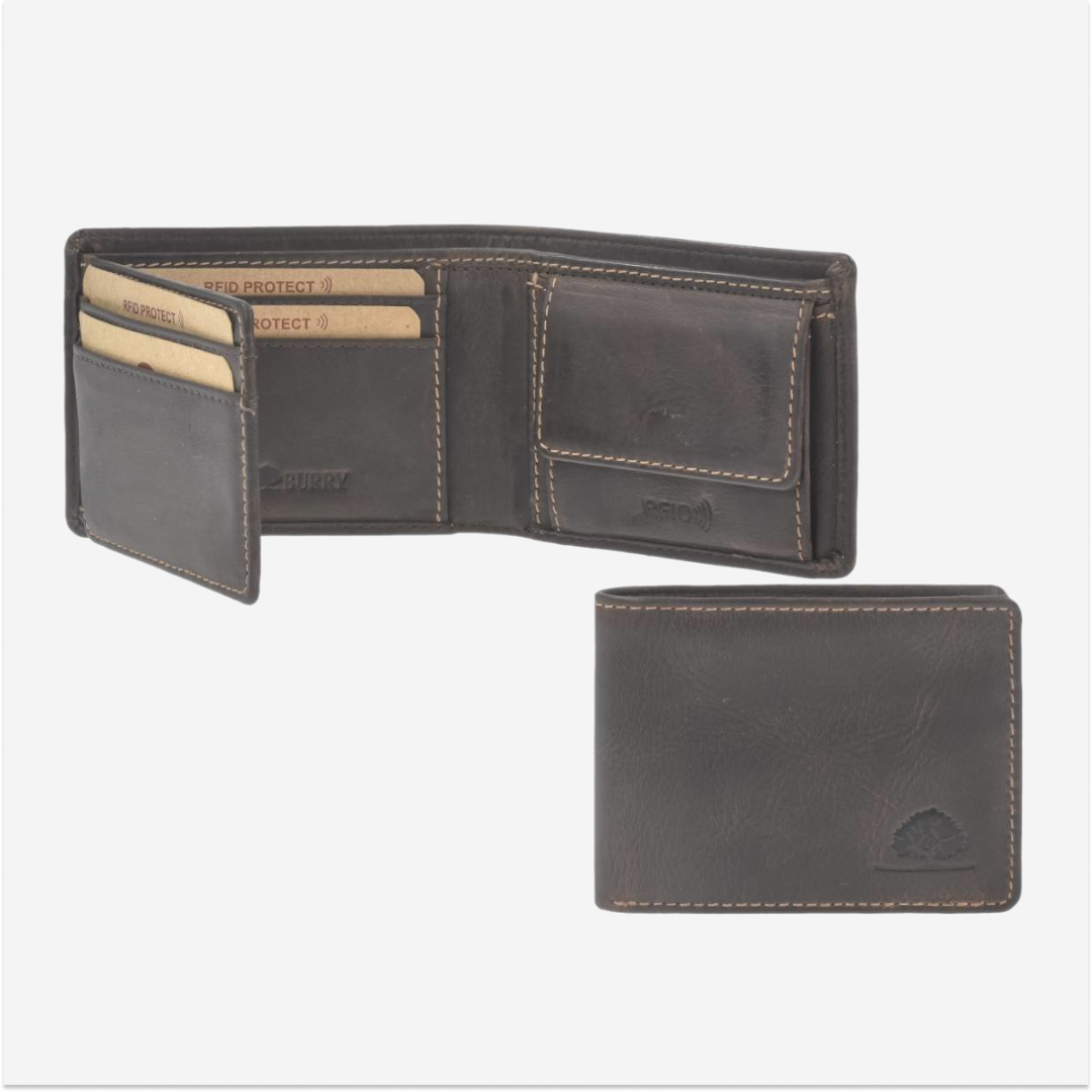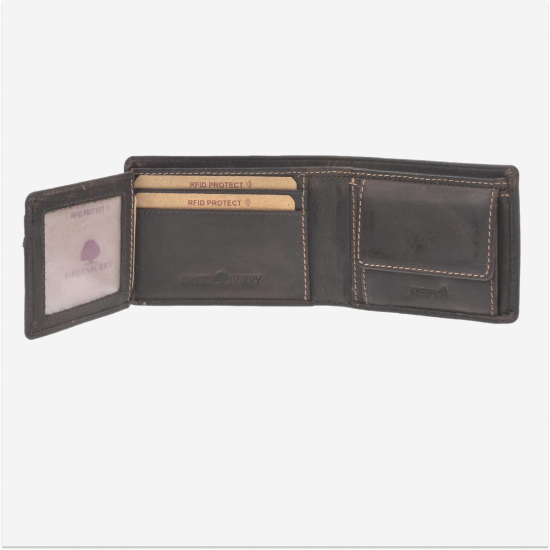 Greenburry Small Leather Wallet 10x7.5cm with RFID Protection "Tornado" in Dark Brown