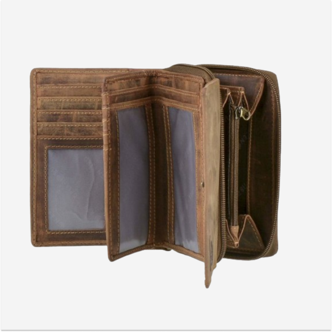 The leather wallet measuring 14x10 cm, equipped with RFID protection in "Vintage" style and in antique brown color (model number 1607-25), offers a combination of functionality and classic design.