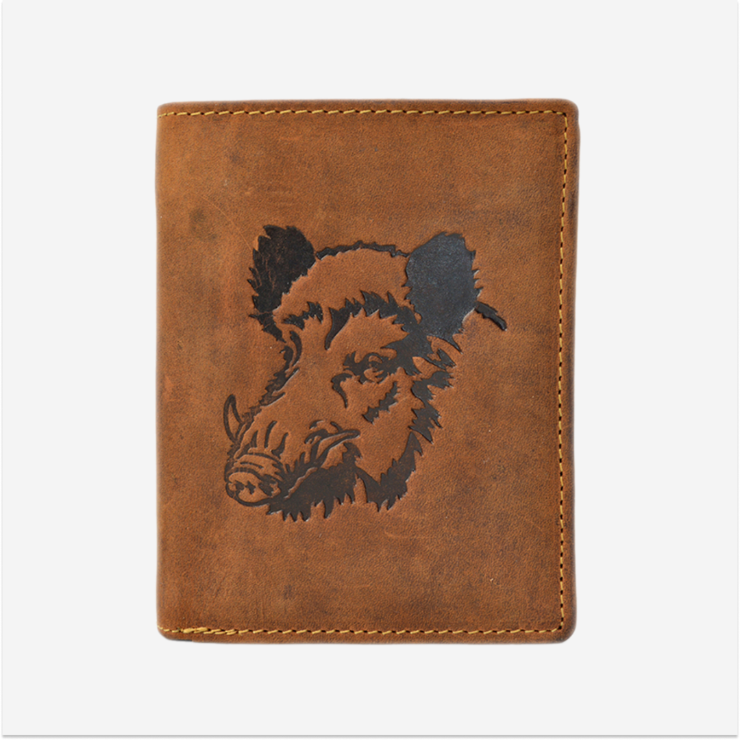The leather wallet with a wild boar motif is perfect for personal use or as a special gift for those who appreciate quality, hunting themes, and classic design.
