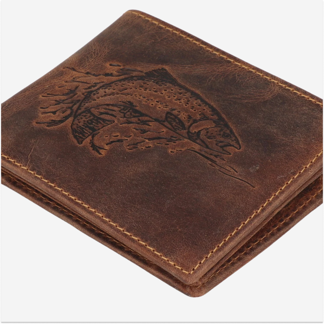 The leather wallet with a forelle motif is perfect for personal use or as a special gift for those who appreciate quality and classic design.